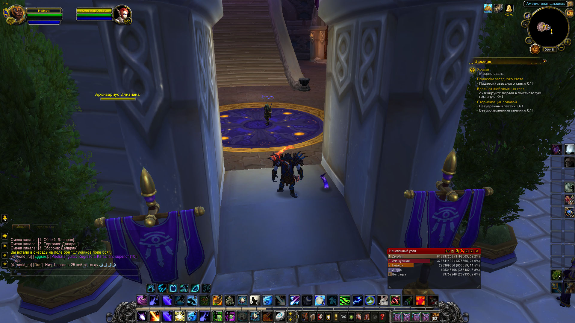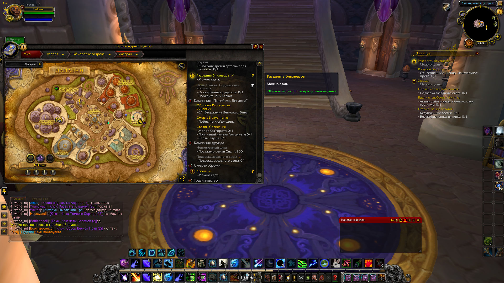 Здравствуйте! Может ли быть такое, что вы начали квест https://ru.wowhead.com/quest=44782 и не доделали его? Именно в течении этого квеста весь совет шестерых перемещается наверх, на вершину Аметистовой Цитадели. |
