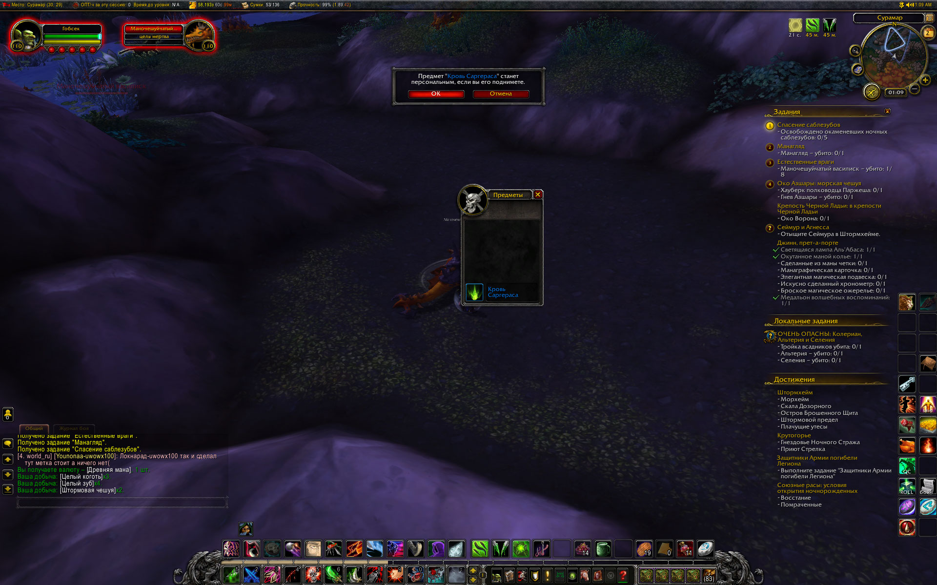Эпик х1. за саргерит не скажу прямо сейчас, а кровь падает со снятия шкур практически с шансом 50%. Конечно, навыки прокачаны, но мне кажется многовато. Или тем самым компенсируются возможные потери от описанной в начале непонятки с подтверждением? Раньше шанс получить Кровь Саргераса с добывающей профы был в районе единицы процента. Проверено и на новом персонаже и на лревнем Кармадоне. |