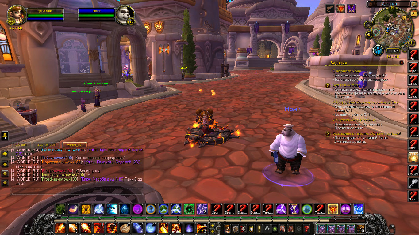 | Description | Я выполнила цепочку квестов на Номи. Но каждый раз, когда я загружаюсь персонажем в Даларане, Номи идет за мной хвостом. Кулинарию не забыть, а этот пандарен раздражает. | ||||