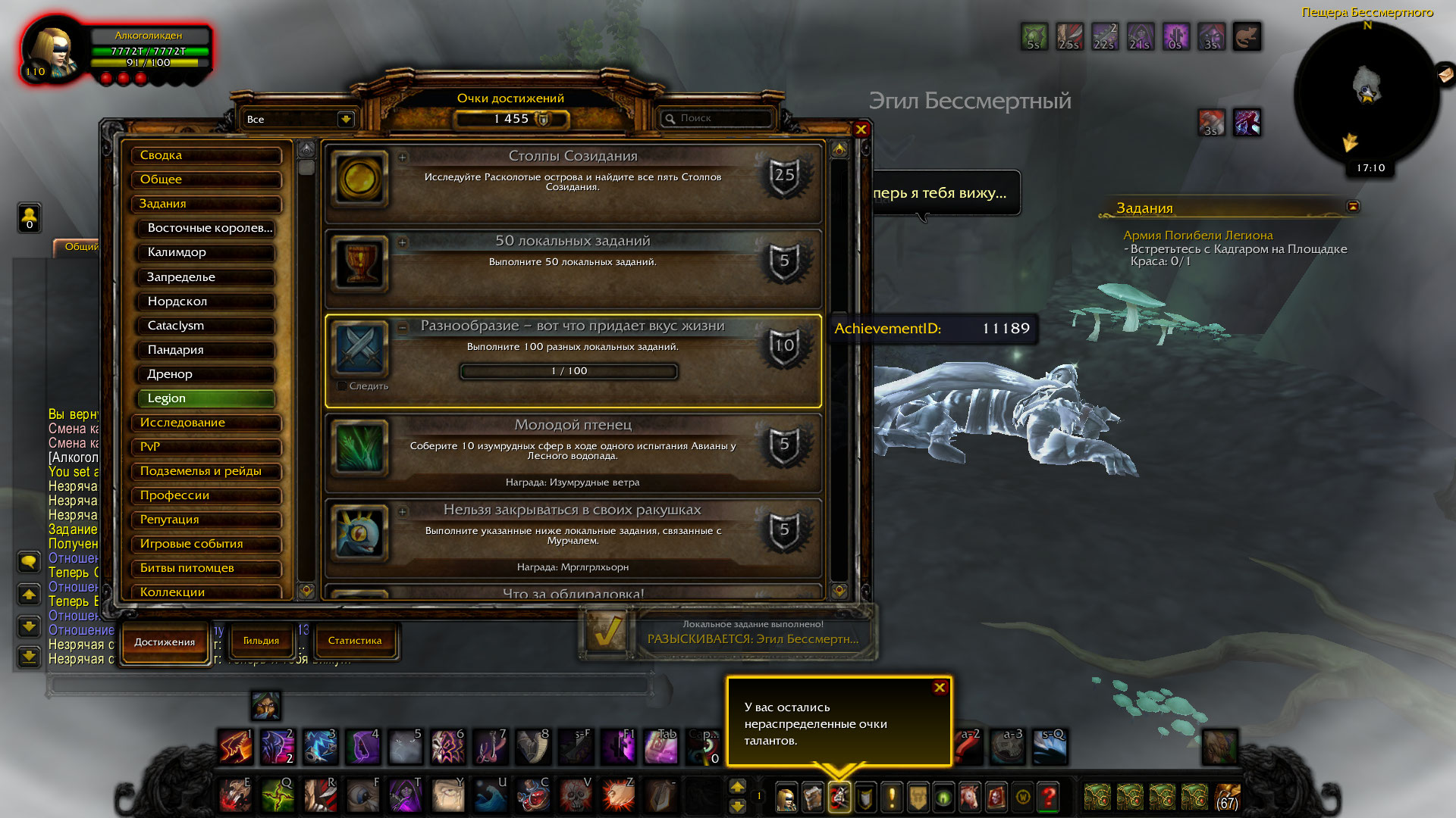 | Description | вчера я хотел повыполнять локальные задания для ачивки, но когда я уже выполнил штук 8 локалок на аргусе, то понял, что счётчик не засчитывает и я вспомнил, что в громовом тотеме отражал какое-то нападение, что тоже было локальным заданием, но всё ещё ничего. ниже представлено видео, где показано, что у меня не набивается счётчик, хотя я так же на этом видео выполнил локальное задание | ||||