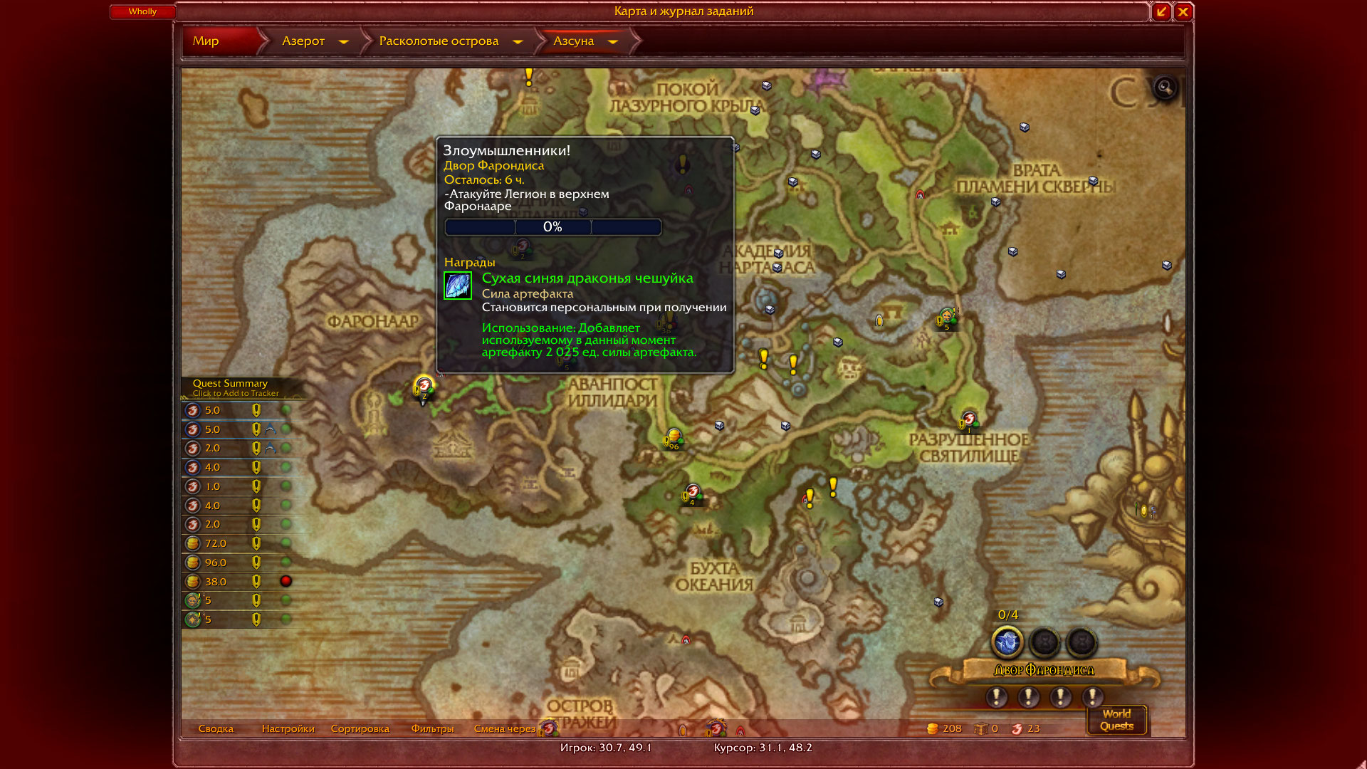 | 0017218 | Legion Core | Quests[Broken Isles] / Задания(и локальные)[Расколотые острова] | public | 2021-12-22 08:02 | 2021-12-22 12:40 |