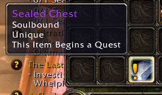 | Description | Item that is dropping from LK 25HC (1% drop chance) ,which is cannot be completed (when you are trying to click on the chest to accept the quest it keeps say "cond" ) Please fix it out so we can get cool items such Tabard of the Lightbringer / Crimson Deathcharger | ||||