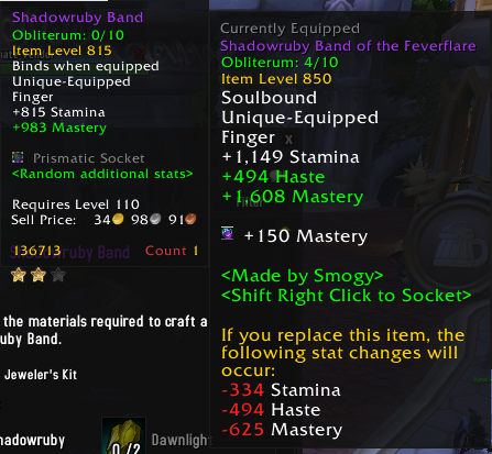 | Steps To Reproduce | Craft the Ring (Shadowruby Band in my case) and upgrade it via Obliterum. | ||||