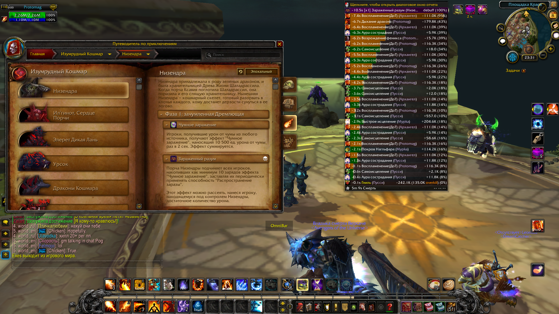 | Description | На Низендре (эпох. режим), при взятии героя в контроль (скилл - Зараженный разум - https://ru.wowhead.com/spell=205043/) ему нужно нанести определенный урон (примерно до 30%), после чего дебафф спадает. Однако, все наложенные на игрока дебафы (игнайт, доты лока, доты шп и т.д.) продолжают тикать на уже дружественной цели, тем самым зачастую добивая союзника (Особенно видно, на игроке Пусси, скриншот - ignite3 (добивало и добило именно воспламенение, уже после того, как игрока выбили с контроля) | ||||