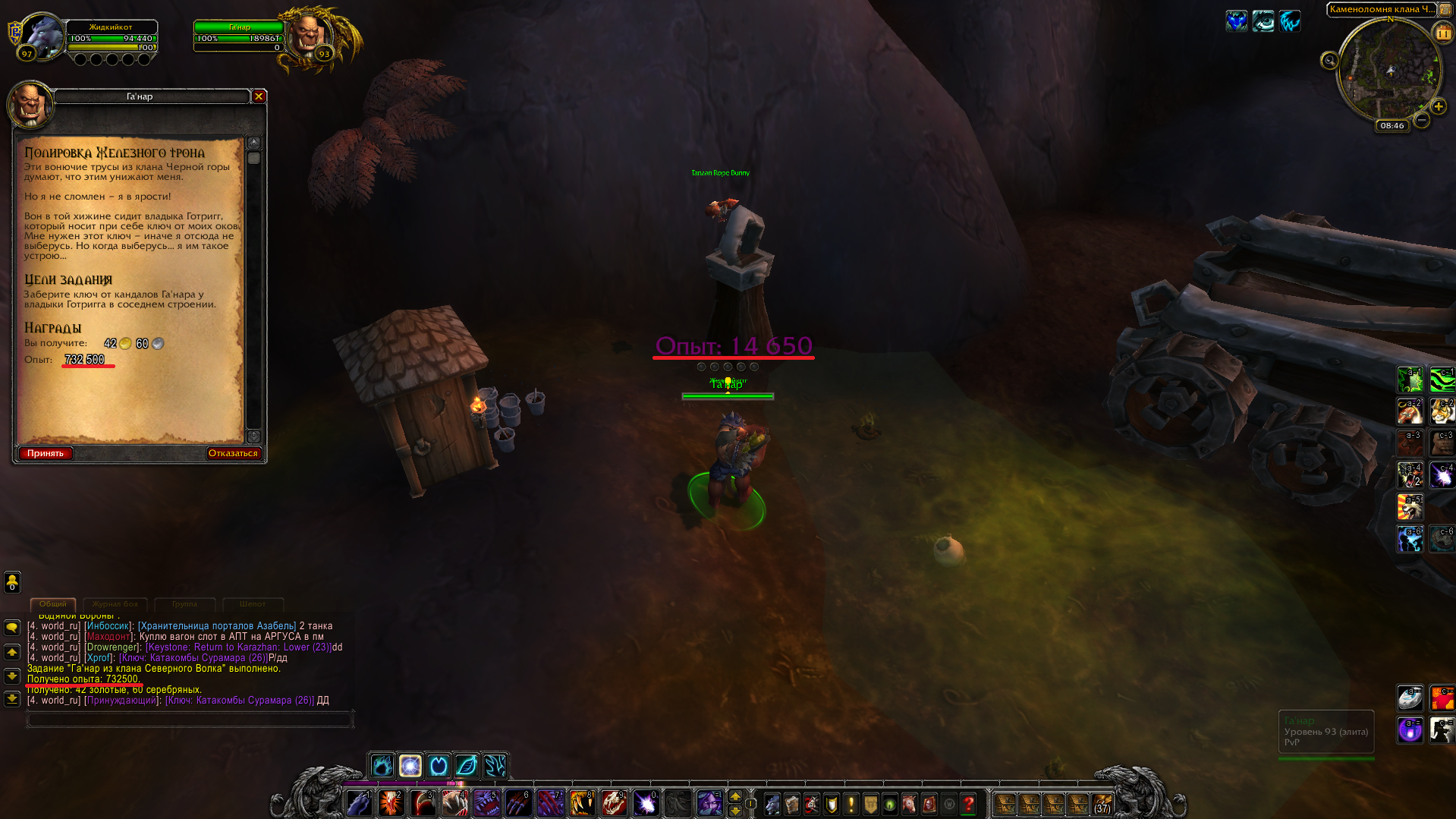 SlamO_o ну ты и нубяра.. ты описание сервера читал? квесты в стартовой зоне: гоблинов, воргенов, дк, дх, пандаренов. дают х1 опыт. то же самое относится к стартовой цепочке дренора которая тоже х1, которую ты заскринил. этот костыль тут сделан, для того чтобы эти квестовые цепочки не ломались как раньше(когда на них тоже действовал серверный рейт с бонусом на опыт). |