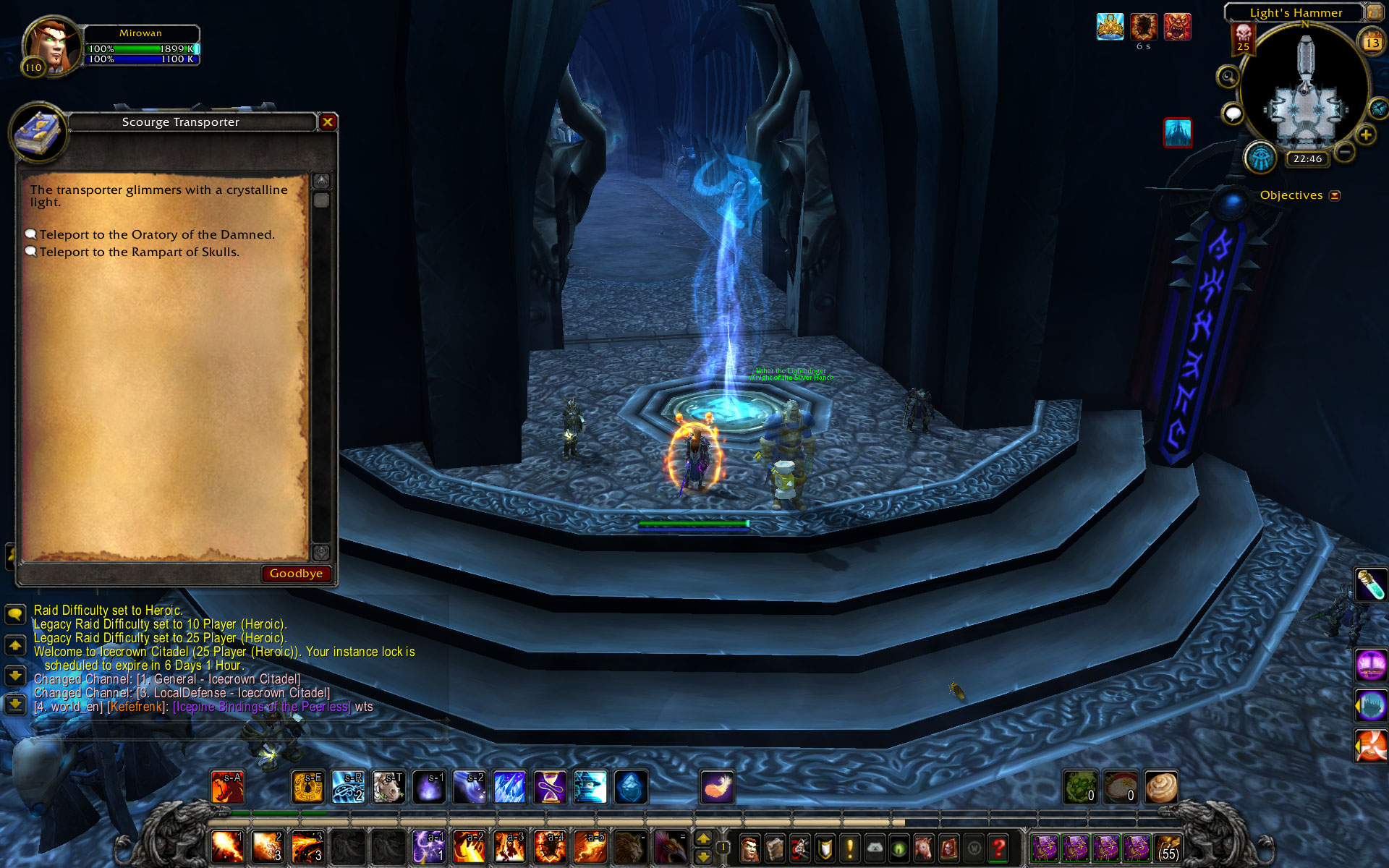 | Description | On my mage "Mirowan", I tried to kill the Lich King in Icecrown Citadel. I can go until the gunship battle boss, where after that I could use the teleporter on my Warlock to continue, but on my mage it doesn't give me the option to go further. | ||||