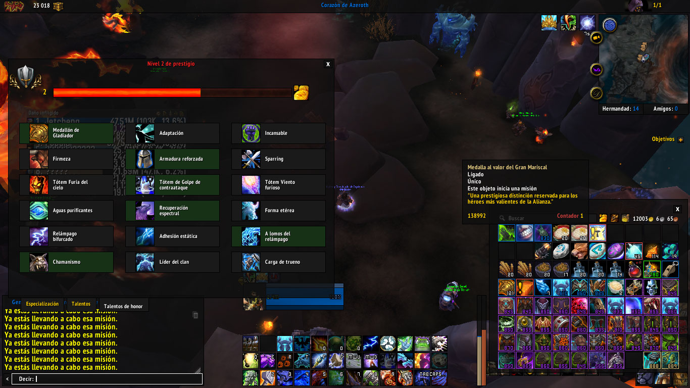 en el chat claramente se puede ver que me salta que ya estoy llevando acabo esa mision pero no la tengo en mi registro de misiones, tambien en la imagen pueden observar q soy prestigio 2 y que tengo el objeto que me da la mision. |