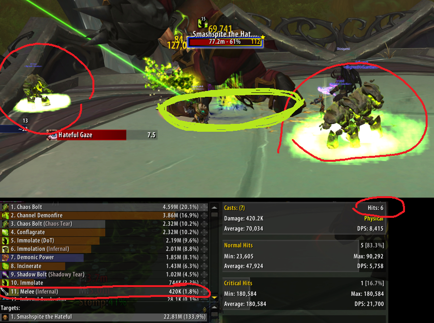 Description'Summon Infernal' on destruction warlock with 'Lord of Flames' golden trait do not attack their target most of the time.