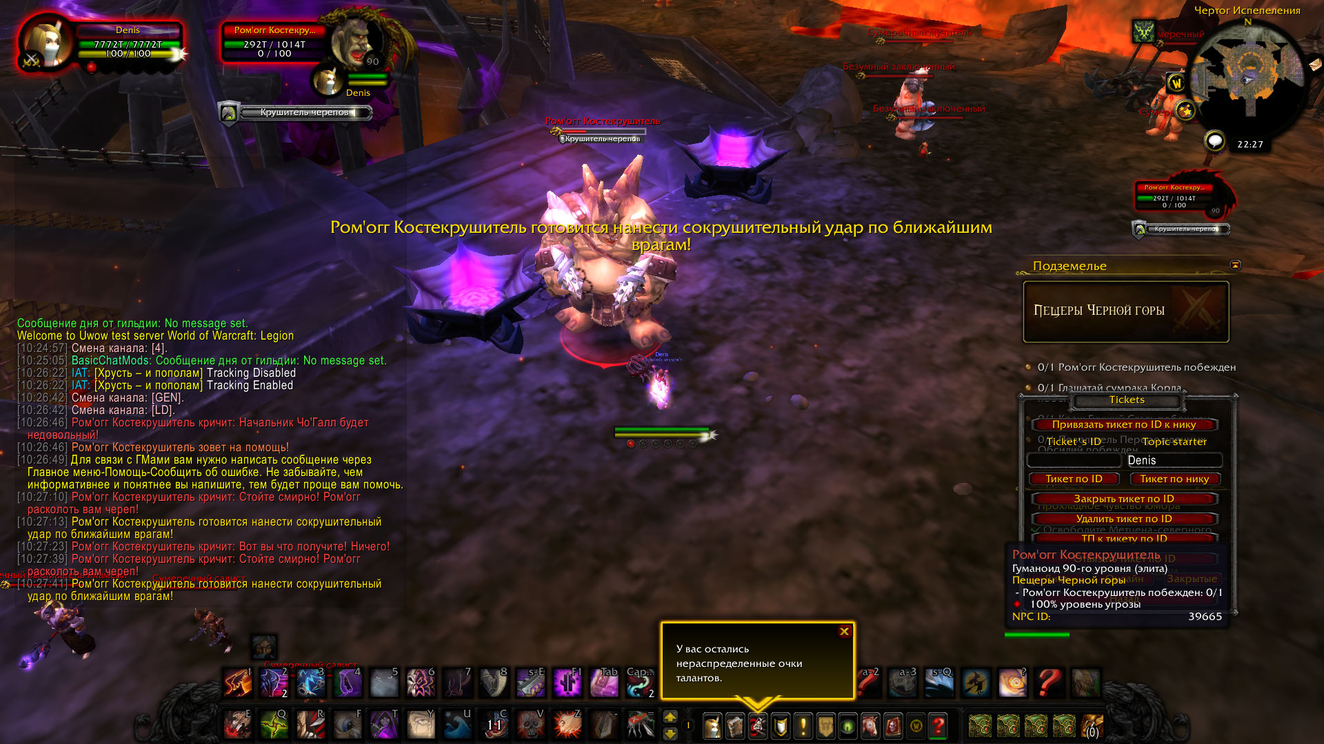 DescriptionНе проходится ачив, босс убивает сам себя https://ru.wowhead.com/spell=75543/крушитель-черепов, даже по достижению критериев прогресс не засчитывает. После самоубийства не засчитывает даже убийство. На скрине видно.