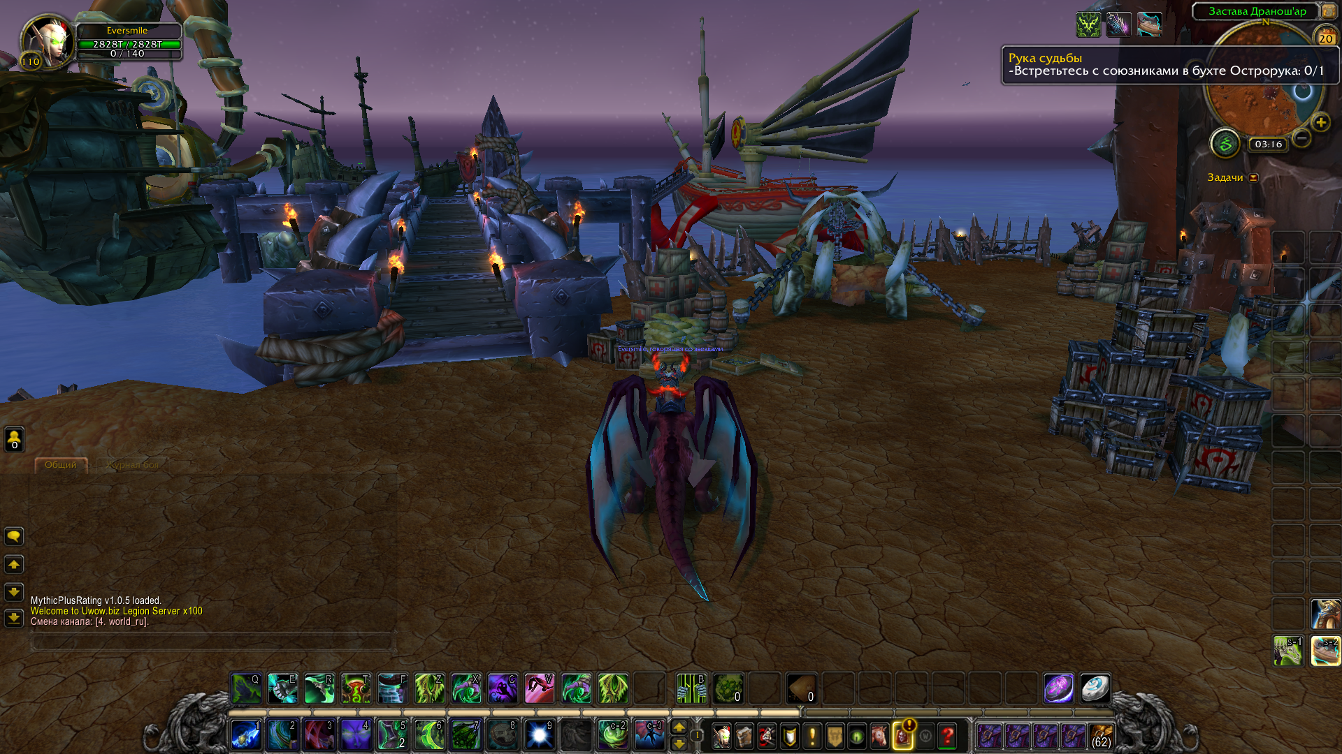 Здравствуйте. Завершили ли Вы цепочку на попадание в Даларан? У Орды фаза попадания в Легион там накладывается, поэтому корабль и квестовый нпс могут исчезать, но только в случае, если Вы не доделали цепочку |