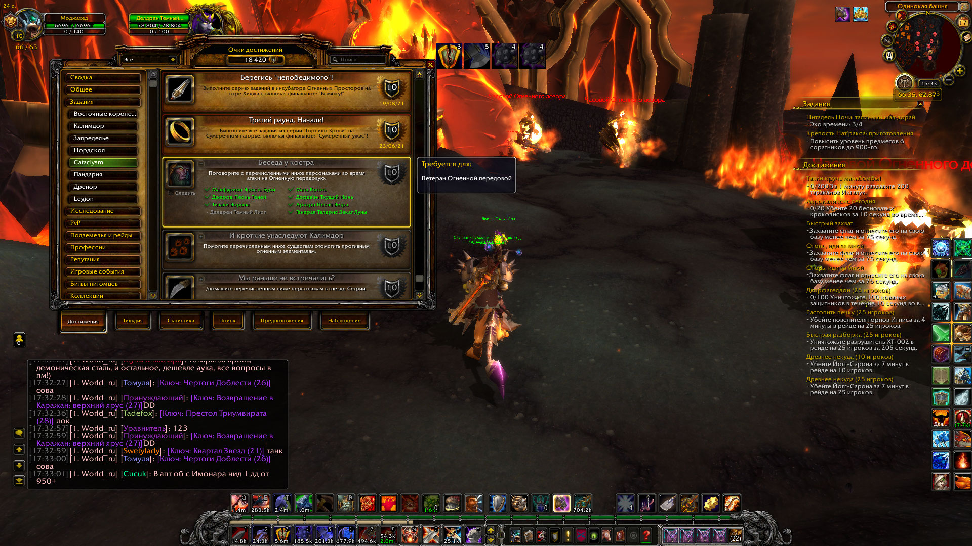 | Description | Добрый день! Не работает https://ru.wowhead.com/achievement=5870/%D0%B1%D0%B5%D1%81%D0%B5%D0%B4%D0%B0-%D1%83-%D0%BA%D0%BE%D1%81%D1%82%D1%80%D0%B0#. До этого создавал репорт (http://tracker.legionbugs.com/view.php?id=16890), который закрыли с пометкой "Решена". Также NPC стоят у подъема к Одинокой башне и с нужным NPC https://ru.wowhead.com/npc=52921 нет диалога. Уже полностью выполнено https://ru.wowhead.com/achievement=5866/%D0%BD%D0%B0%D1%81%D1%82%D1%83%D0%BF%D0%BB%D0%B5%D0%BD%D0%B8%D0%B5-%D0%BD%D0%B0-%D0%BE%D0%B3%D0%BD%D0%B5%D0%BD%D0%BD%D1%83%D1%8E-%D0%BF%D0%B5%D1%80%D0%B5%D0%B4%D0%BE%D0%B2%D1%83%D1%8E# | ||||