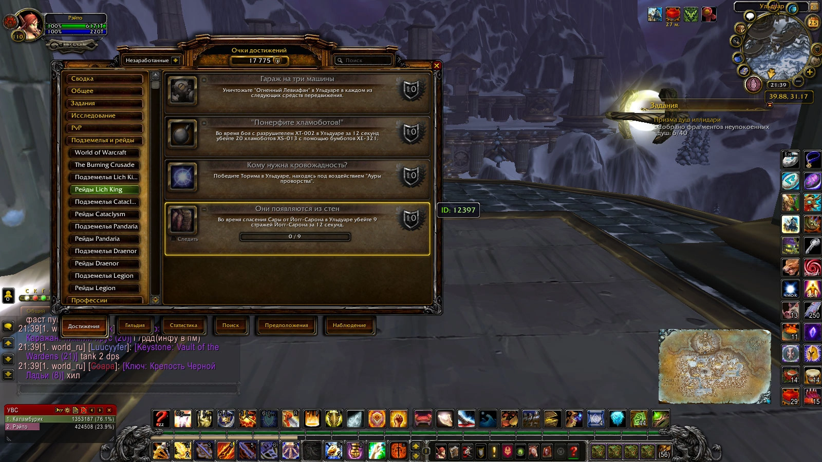 | Description | Здравствуйте, заметил, что в игре достижения, где есть тайминг, например "Они появляются из стен" - Ульдуар. Тайминг начинается, а мобов не засчитывает. Так происходит со всеми достижениями олд рейдов и ппг. Очень обидно, т.к хочется получить маунтов с достижений | ||||