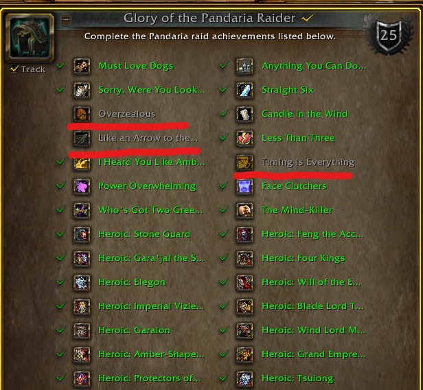 | Description | Hello, I have found 3 major bugs with these achievements: 1.overzealous : https://www.wowhead.com/achievement=6937/overzealous 2.Like an Arrow to the Face : https://www.wowhead.com/achievement=6553/like-an-arrow-to-the-face 3.Timing is Everything : https://www.wowhead.com/achievement=6922/timing-is-everything ----- for the "Overzealous" : -Defeat Imperial Vizier Zor'lok while every member of the raid is afflicted with the Zealous Parasite debuff. problem is when you do what the achievement requires, it won't complete the achievement. for the "Like an Arrow to the Face" : Defeat Garalon in Heart of Fear on Normal or Heroic difficulty without destroying any of his legs. same with this one, I killed this boss many times without damaging any of his legs, but when he dies it won't complete the achievement. for the "Timing is Everything" : Defeat two Kor'thik Reavers within 10 seconds of each other, and then defeat Grand Empress Shek'zeer in Heart of Fear on Normal or Heroic difficulty. basically you have to aggro the boss and it slowly drains his energy when he damages you, after the energy bar reaches 0 he spawns these mobs: "Kor'thik Reavers", and then the player should kill 2 of them within 10 seconds to get the achievement. problem is that when you aggro the boss her energy bar wont drop at all, so the mobs wont spawn and you can't get the achievement. --- all of these 3 achievements are at Raid : "Heart of Fear" and the "Glory of the Pandaria Raider" has 29 achievements and only 3 of them are bugged, so you can't get the mount. I have tried them many times on several characters and I'm certain they are Bugged, I'm asking you to please consider fixing these issues so people can get the mount from this achievement. thank you! | ||||