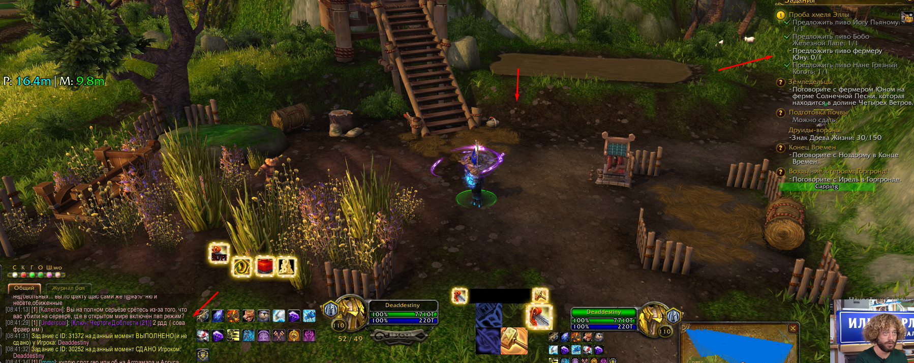 | Additional Information | stiqwaser: https://ru.wowhead.com/npc=58721/%D1%84%D0%B5%D1%80%D0%BC%D0%B5%D1%80-%D1%8E%D0%BD - Выдает квест https://ru.wowhead.com/quest=30252/%D1%80%D1%83%D0%BA%D0%B0-%D0%BF%D0%BE%D0%BC%D0%BE%D1%89%D0%B8 переводя игрока в фазу начинает сюжетку где уходит в дом рядом. После сдачи квеста начинается сюжетный диалог, в котором НПС должен поговорить с https://ru.wowhead.com/npc=57402/%D1%85%D0%B0%D0%BE%D1%85%D0%B0%D0%BD%D1%8C-%D0%B3%D1%80%D1%8F%D0%B7%D0%BD%D1%8B%D0%B9-%D0%BA%D0%BE%D0%B3%D0%BE%D1%82%D1%8C Если во время сюжетки релогнутся - сюжетка не прекратится, НПС будут вечно стоять в локации не давая возможность продолжить выполнение заданий. После сюжетного диалога НПС дает возможность взять квест для продолжения выполнения заданий. НПС пропадает после рестарта. Если на момент рестарта у НПС взят квест, то он не пропадает пока квест не отменить. | ||||