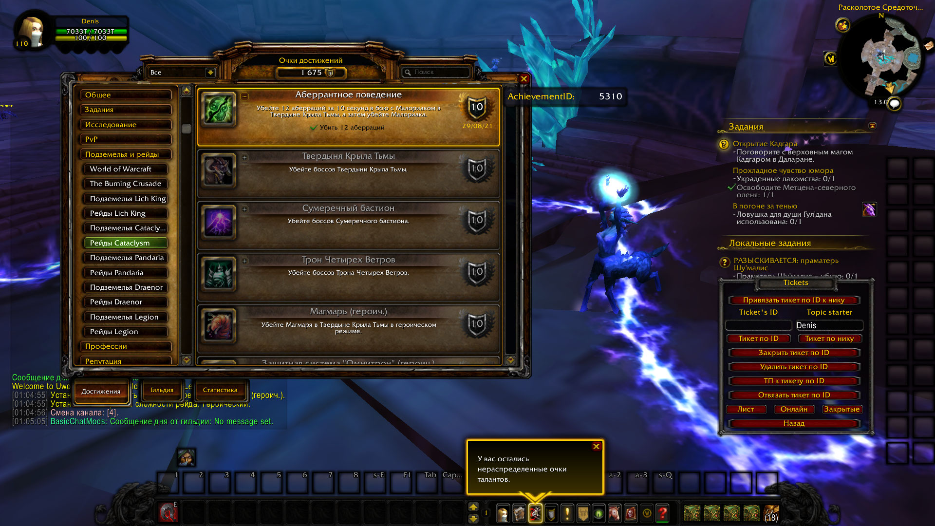 | Description | Пошёл (не первая попытка) выполнять достижение Аберрантное поведение в Твердыню крыла тьмы. Поставил ачивку на отслеживание. Опустил хп босса до 25%, заспавнились аберрации. Убил их, в отслеживании появилась галочка, начался таймер, сразу после этого убил самого босса. После его убийства в отслеживании ачивки появилось "провалено". | ||||