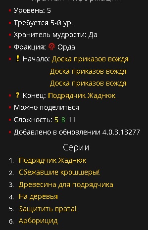 | Description | Возможно выполнить все условия кроме: Защита Оргриммара. Нету квеста | ||||