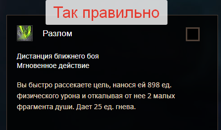 | Description | сейчас талант "Трещина" у танка ДХ работает неправильно. Она тратит 30 гнева. А в легионе она должна давать 25 гнева. | ||||