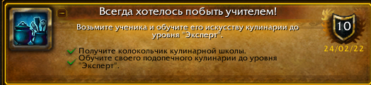 | Summary | 0018330: https://ru.wowhead.com/achievement=7325/всегда-хотелось-побыть-учителем#comments | ||||