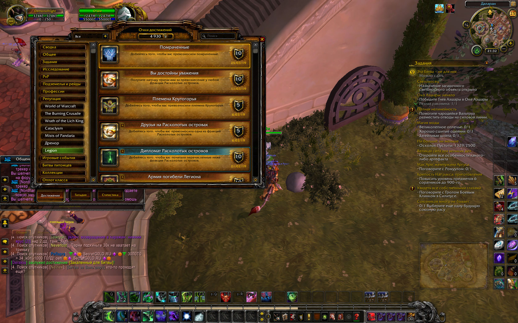 | Description | Не засчитывает достижение союзной рассы ночнорожденных и невозможно сдать квест Сильване "союзников много не бывает". Критерии для достижения выполнены. Скриншоты прилагаются. Legion x100. | ||||