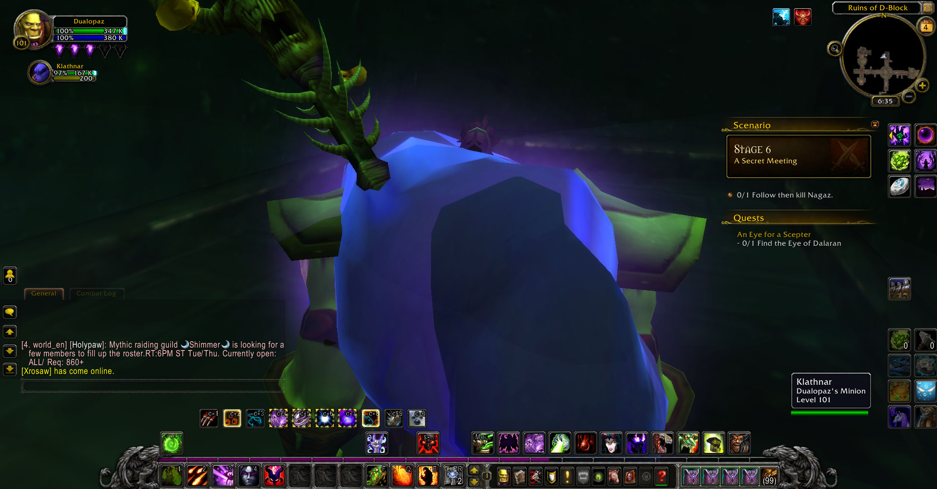 | Summary | 0018429: Warlock Destruction Artifact Scenario. A Secret Meeting stage 6, 0/1 follow and then kill Nagaz. |