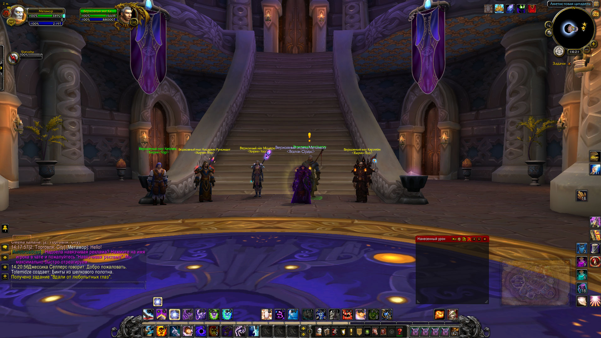 | Steps To Reproduce | Цепочка начинается с квеста - Расколотый берег: разведка, далее он отправляет нас в Даларан в Аметистовую цитадель, по квесту Совет Шестерых, и тамже у Кадгара берется квест Вдали от любопытных глаз. | ||||