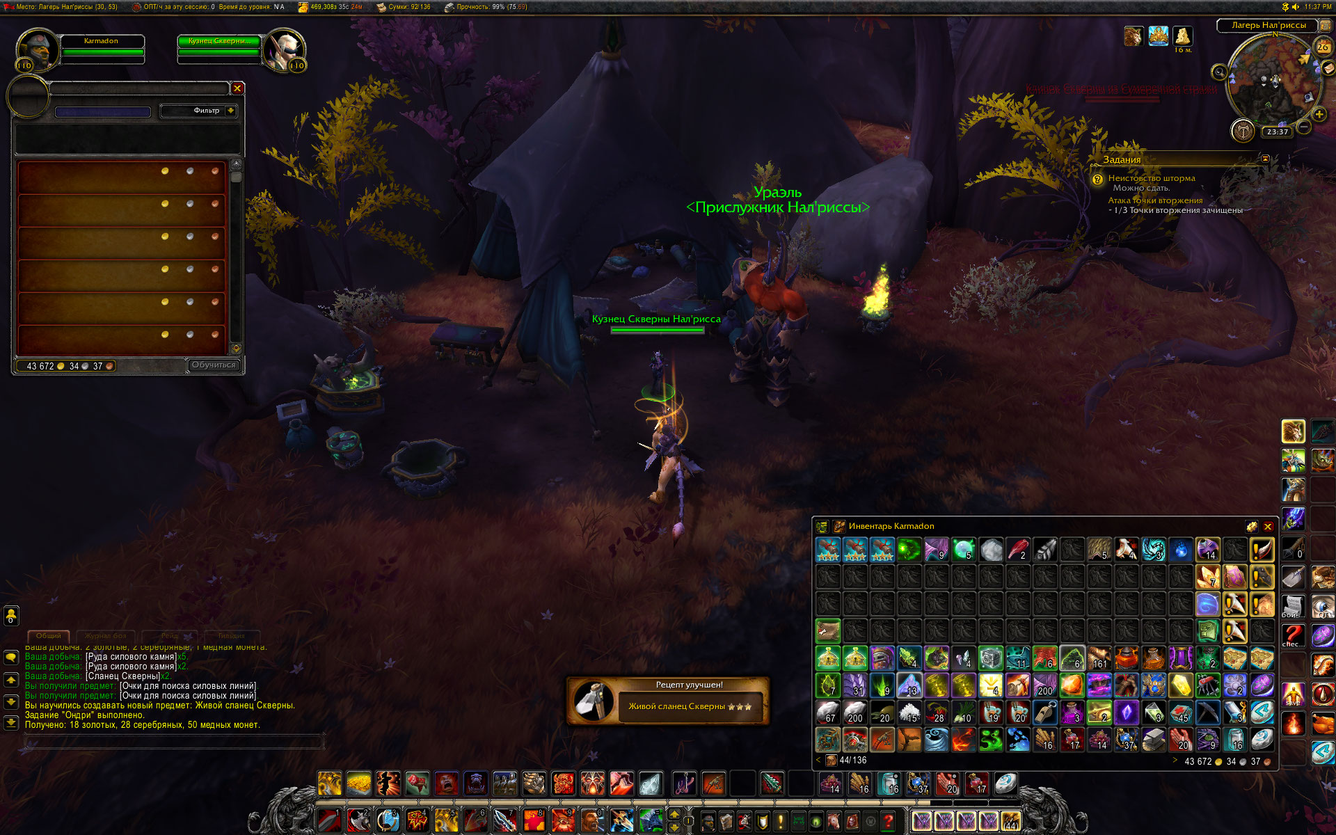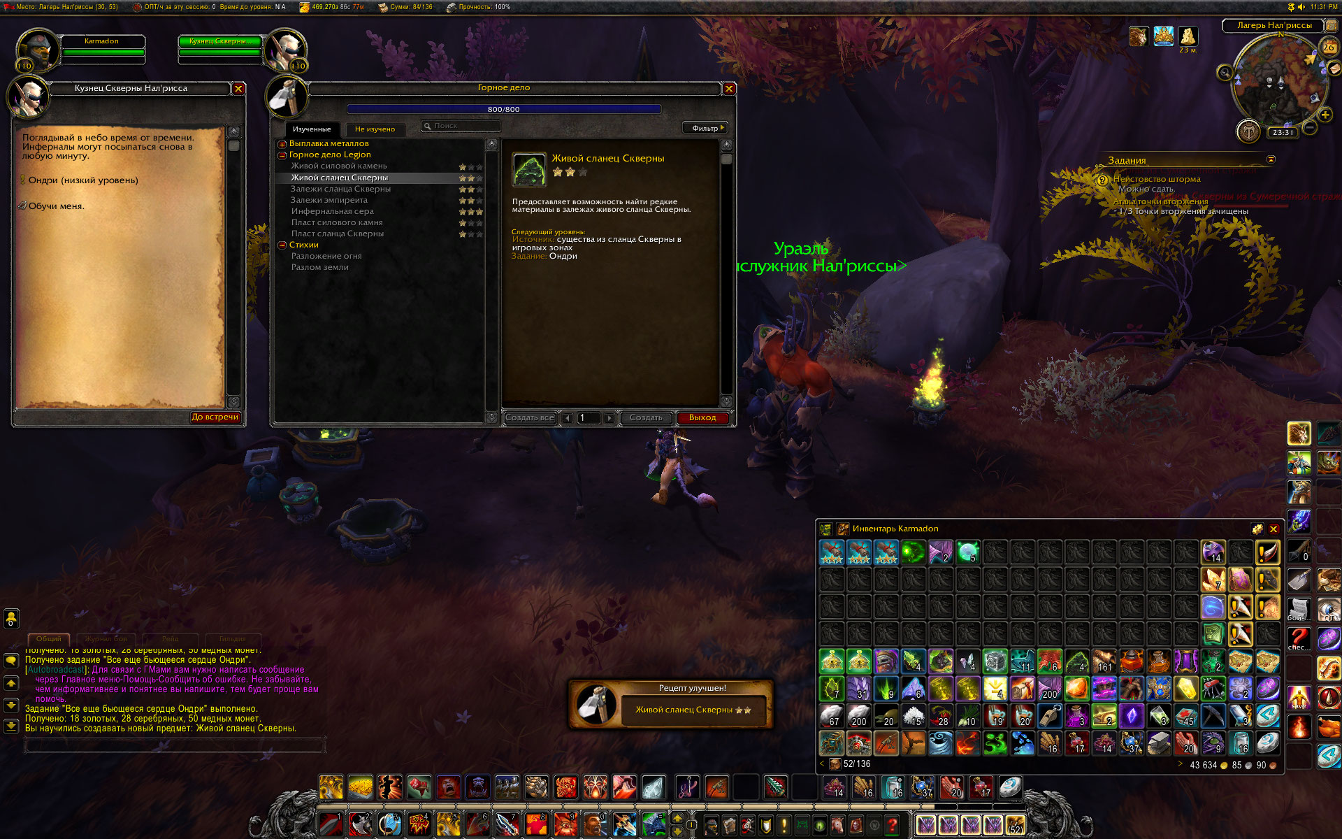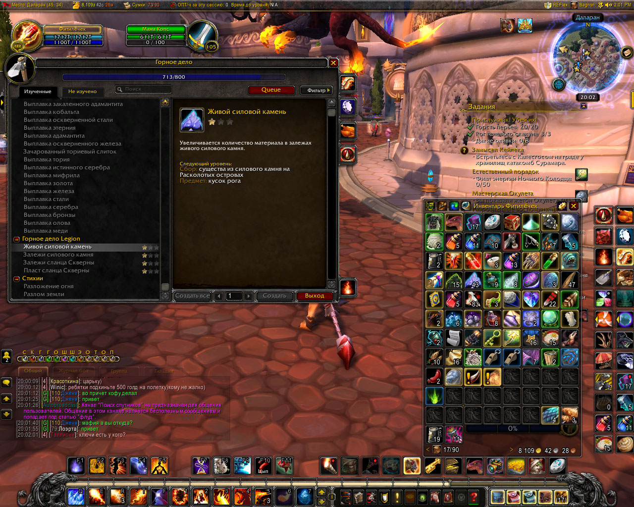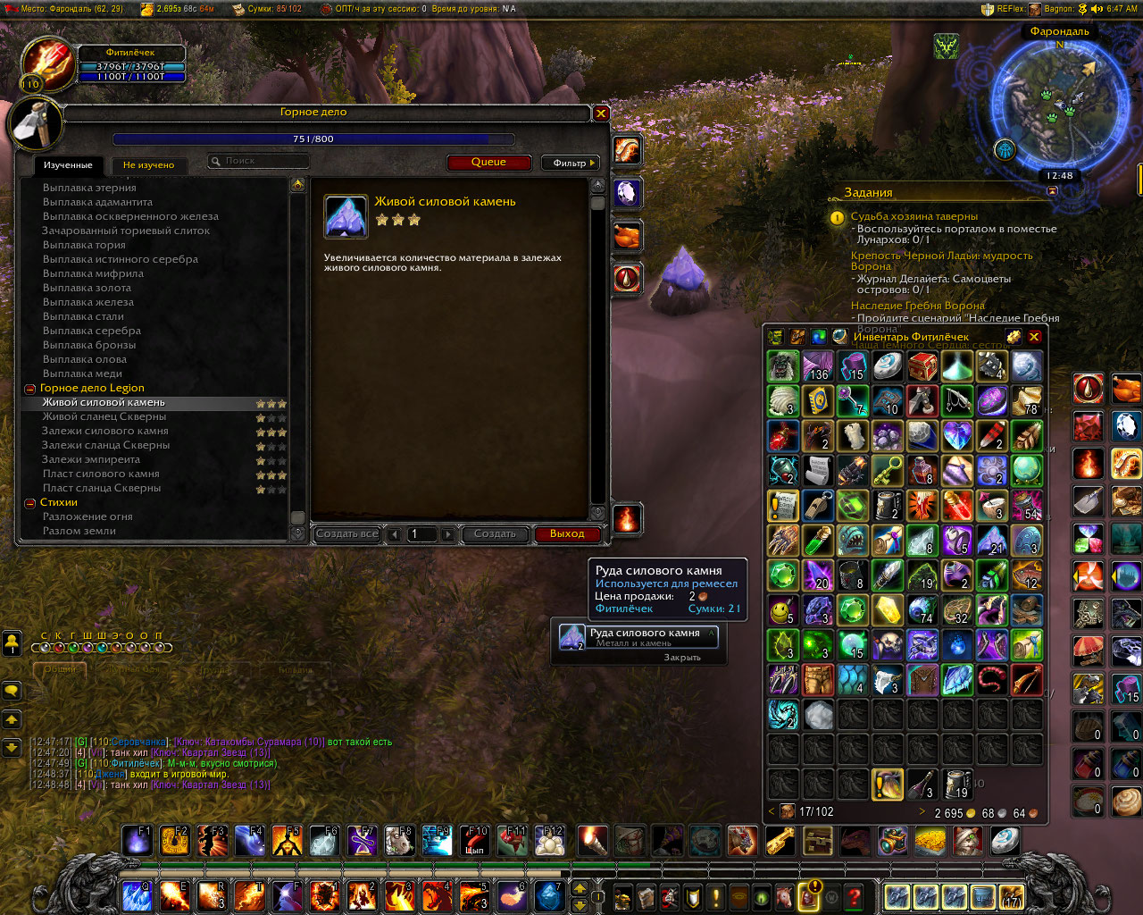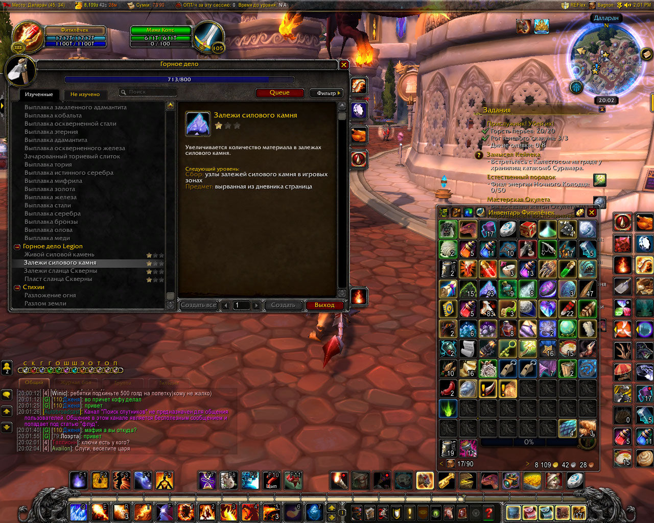 Написал все это, прочитал, еще раз прочитал. И подумал - а почему собственно? зачем ждать пока соберу все старт-итемы, если сланец скверны до 2 звезд можно уже прокачать? И вот, на скринах видно, что рецепты кроме залежей силового камня в 1 звезде. Для сланца скверны все итемы есть и условия выполнены (преквест сестры Налриссы). Как результат чтото в две звезды (на пласт сланца скверны итема пока нет) а что то и на три. Все еще ожидаю итем на 1 звезду залежей силового камня. :) с киркой в руках WoWScrnShot_032719_013806.jpg (561,399 bytes) WoWScrnShot_032719_013135.jpg (599,414 bytes) WoWScrnShot_032719_013037.jpg (574,363 bytes) WoWScrnShot_032719_013011.jpg (527,682 bytes) |