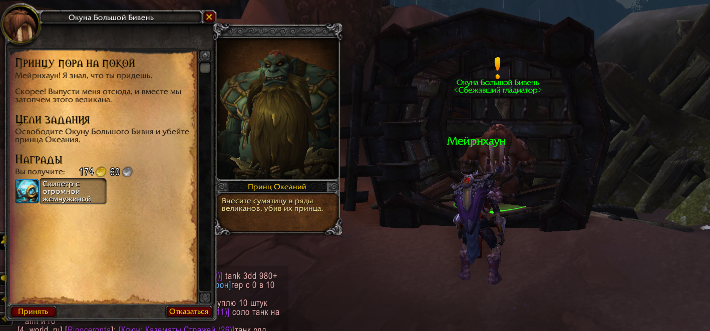 | Steps To Reproduce | 1. При прохождении квестовой цепочки "Борьба с великанами" в Азсуне взять финальный для нее квест "Принцу пора на покой" у НПС "Окуна Большой бивень". 2. Взаимодействовать с клеткой НПС "Окуна Большой бивень" чтобы его освободить. 3. Проследовать за НПС "Окуна Большой бивень" к трону. | ||||