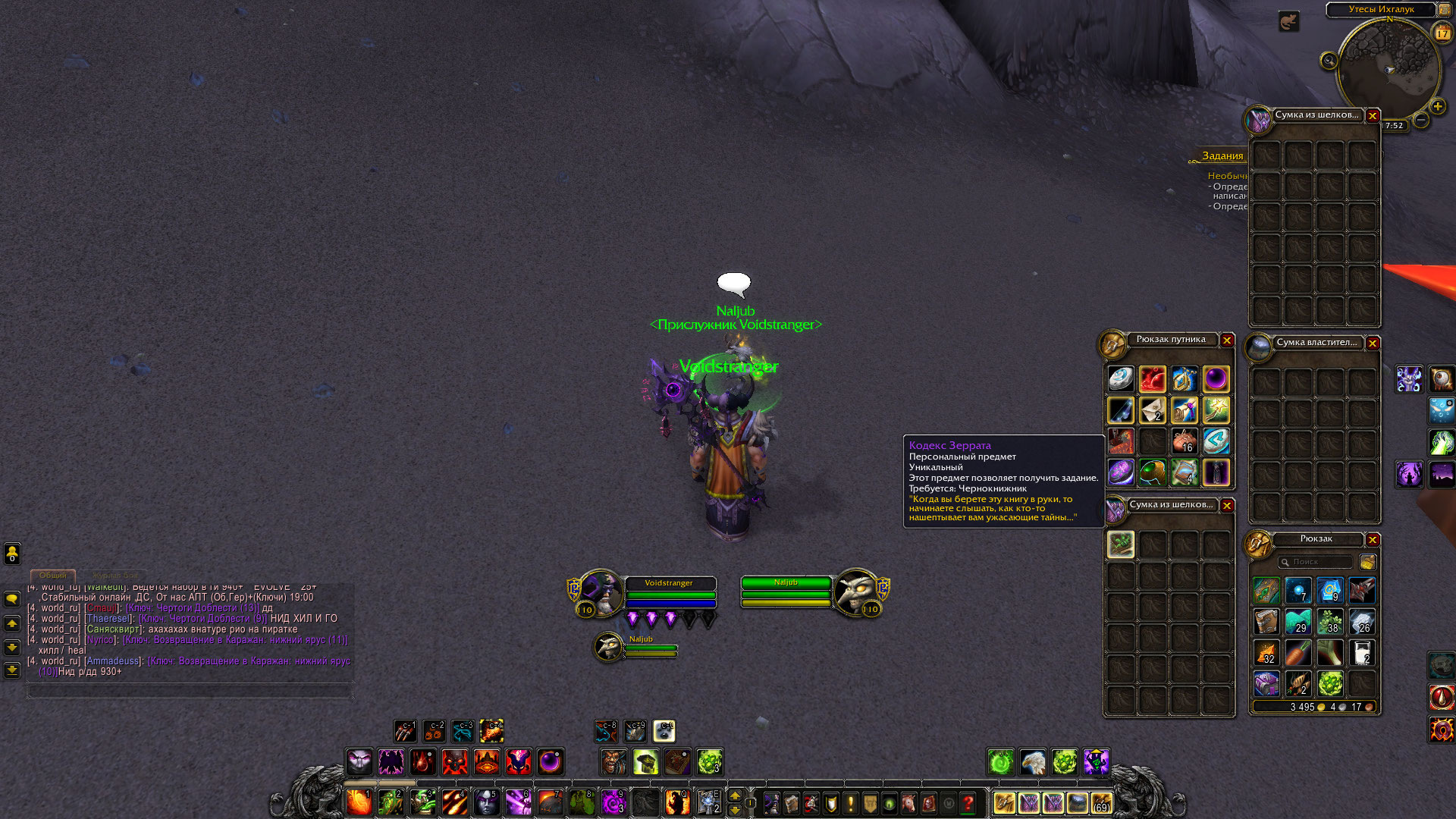 | Description | Добрый день! После получения кодекса Зеррата, требуется поговорить со своим прислужником, но этого не получается сделать - облочко над головами прислужников висит, но прокликивание не выводит окна общения. Перепробовал всех прислужников. Прошу помочь! Заранее спасибо. | ||||