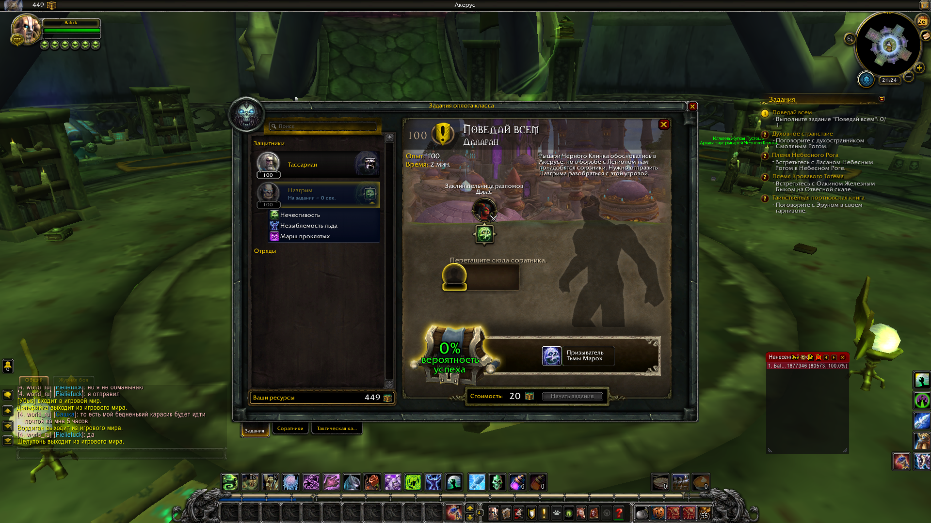 | Summary | 0018833: Не могу отправить соратника на задание | ||||