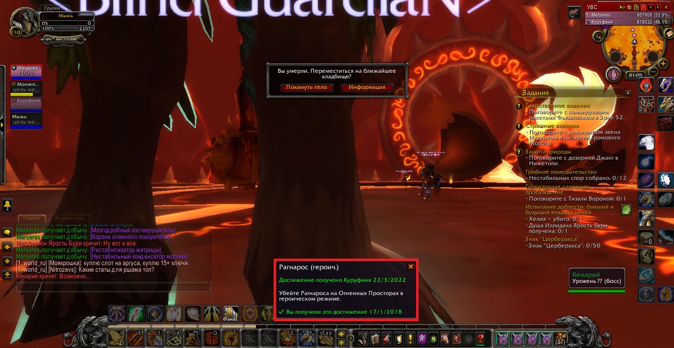 | Description | Здравствуйте. У меня не засчитываются следующие достижения: 1. Убийство Рагнароса и ачивка на Огненные просторы (скрины 1-3); 2. Убийство Сартариона (4 скрин); 3. Убийство Малигоса (5 скрин); 4. Не могу сдать квест в гарнизоне, отсутствует НПС (скрин 6). | ||||