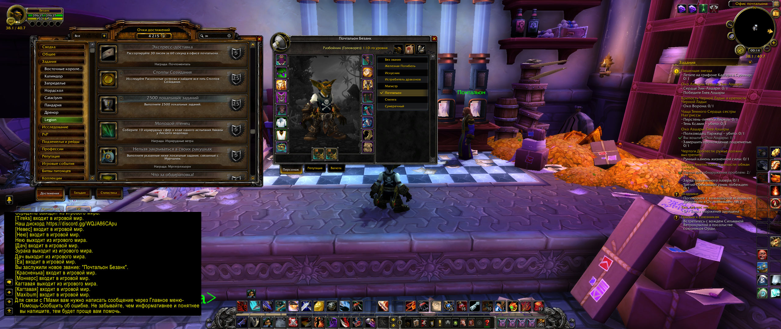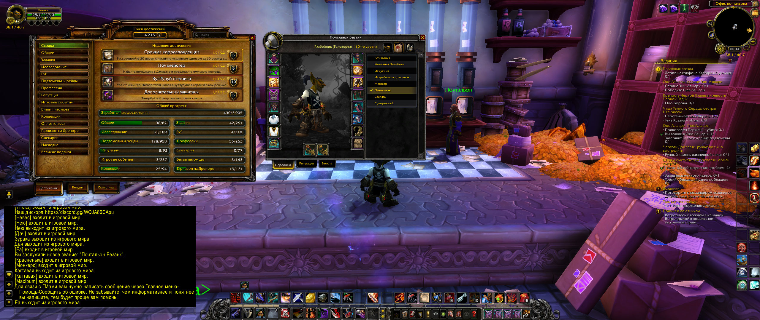 В том то и дело, что достижение Экспресс-доставка я не получил, как и https://ru.wowhead.com/item=156721/%D0%BF%D0%BE%D1%87%D1%82%D0%BE%D0%BC%D0%B5%D0%BD%D1%82%D0%B0%D0%BB%D1%8C |