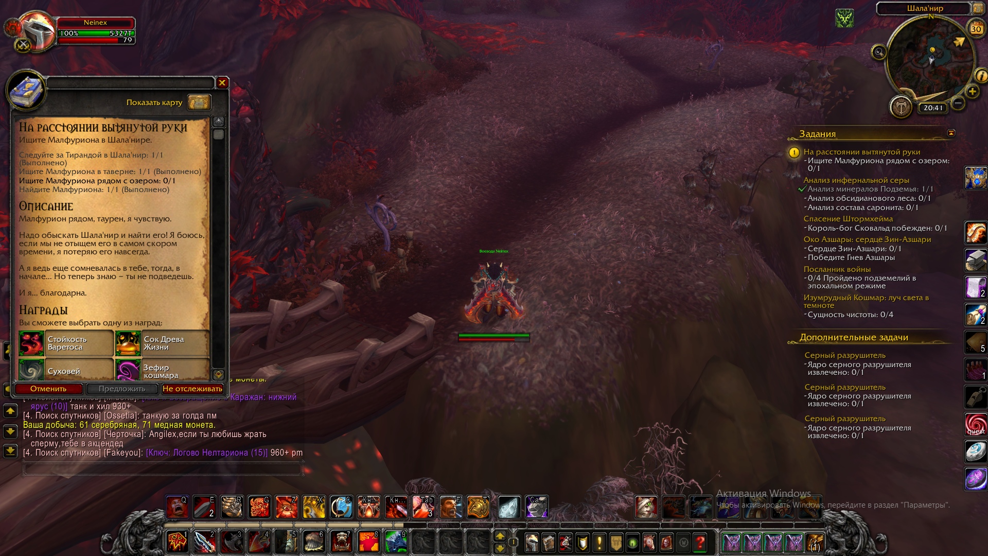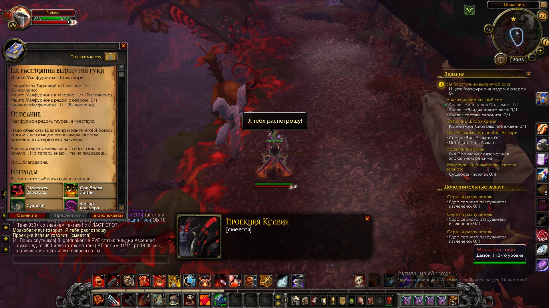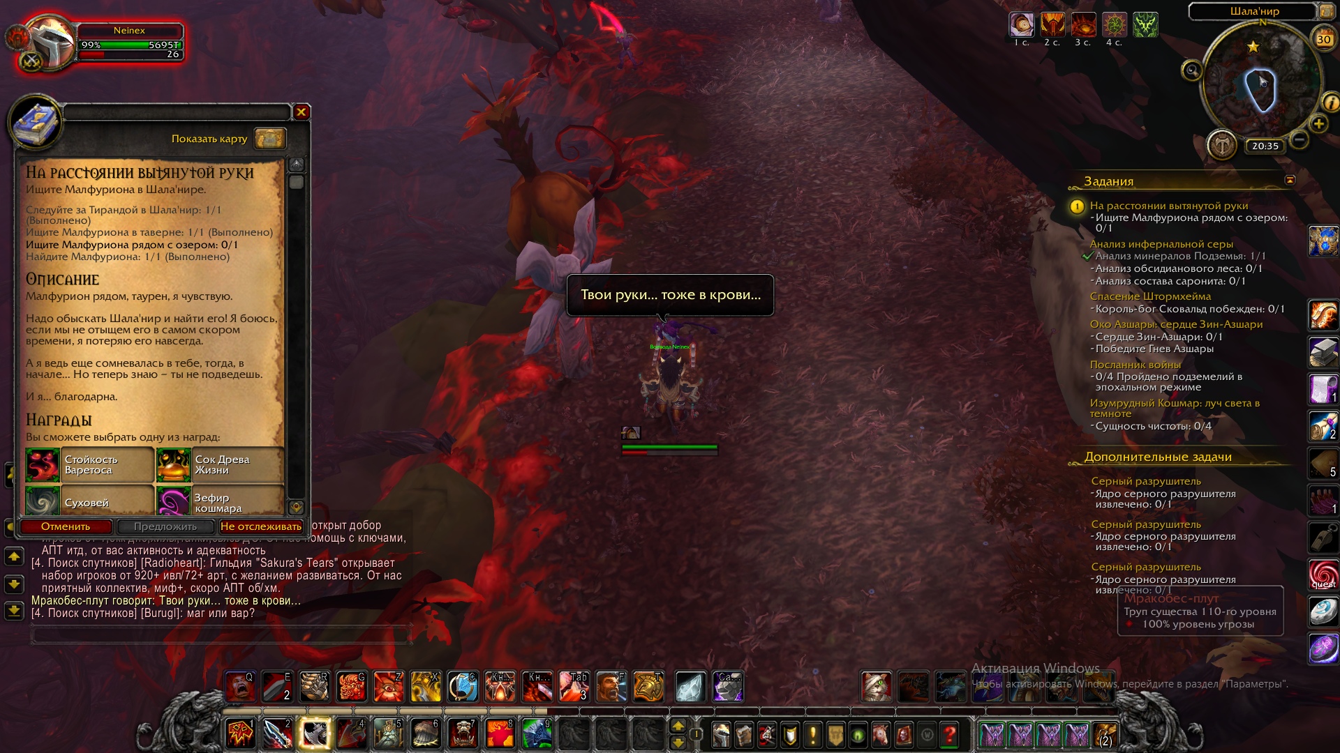 | Description | Квест сломан. Нажимаешь на Малфуриона у озера и ничего не происходит. | ||||