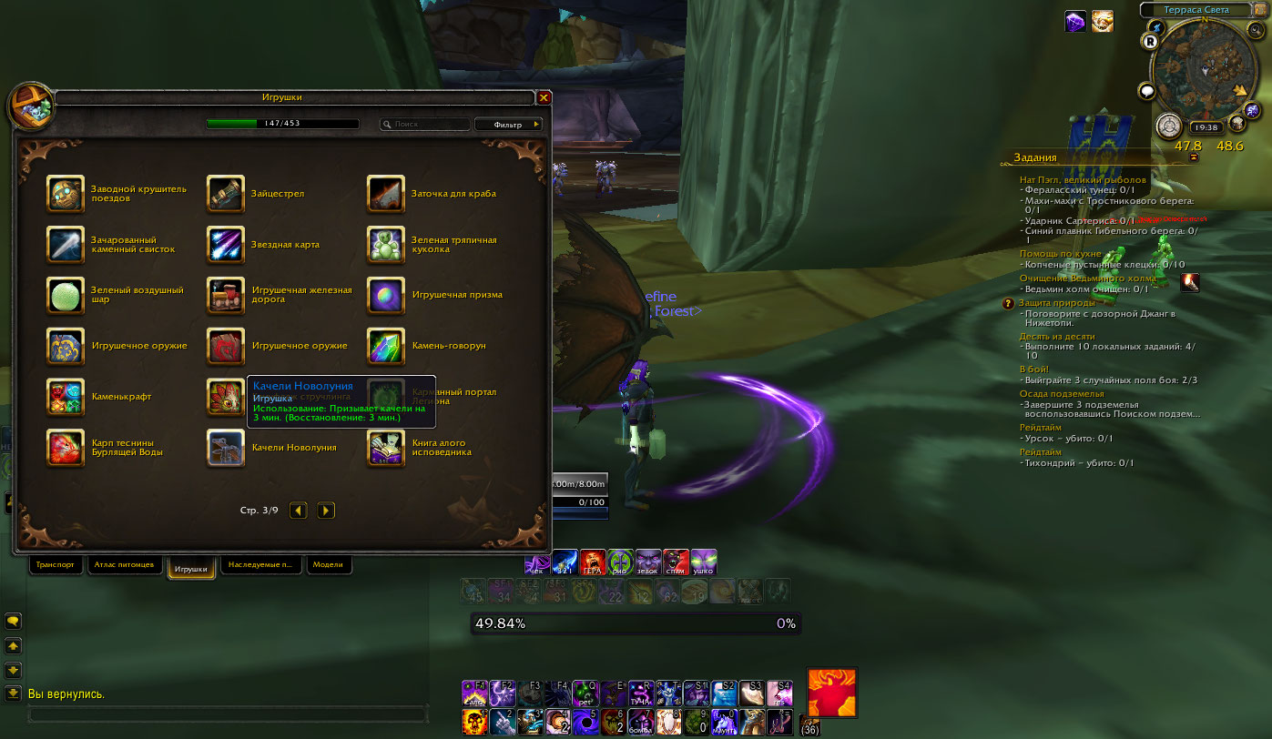 | Description | https://ru.wowhead.com/item=97994 перестала работать игрушка, ранее спавнила качели хоть и навешивала баф. теперь не работает совсем | ||||