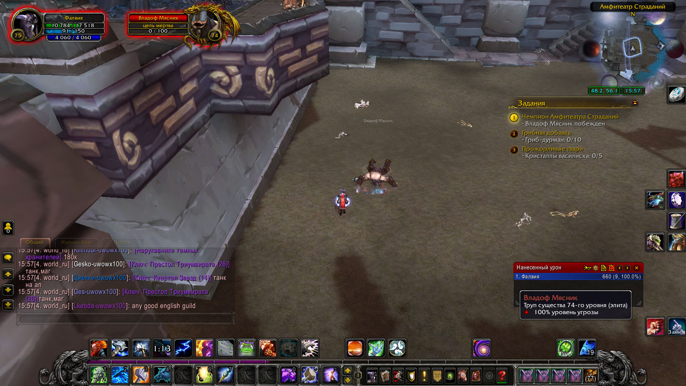 | Description | Во время прохождения последнего квеста из цепочки Амфитеатра Страданий не засчитывается убийство NPC Владоф Мясник |