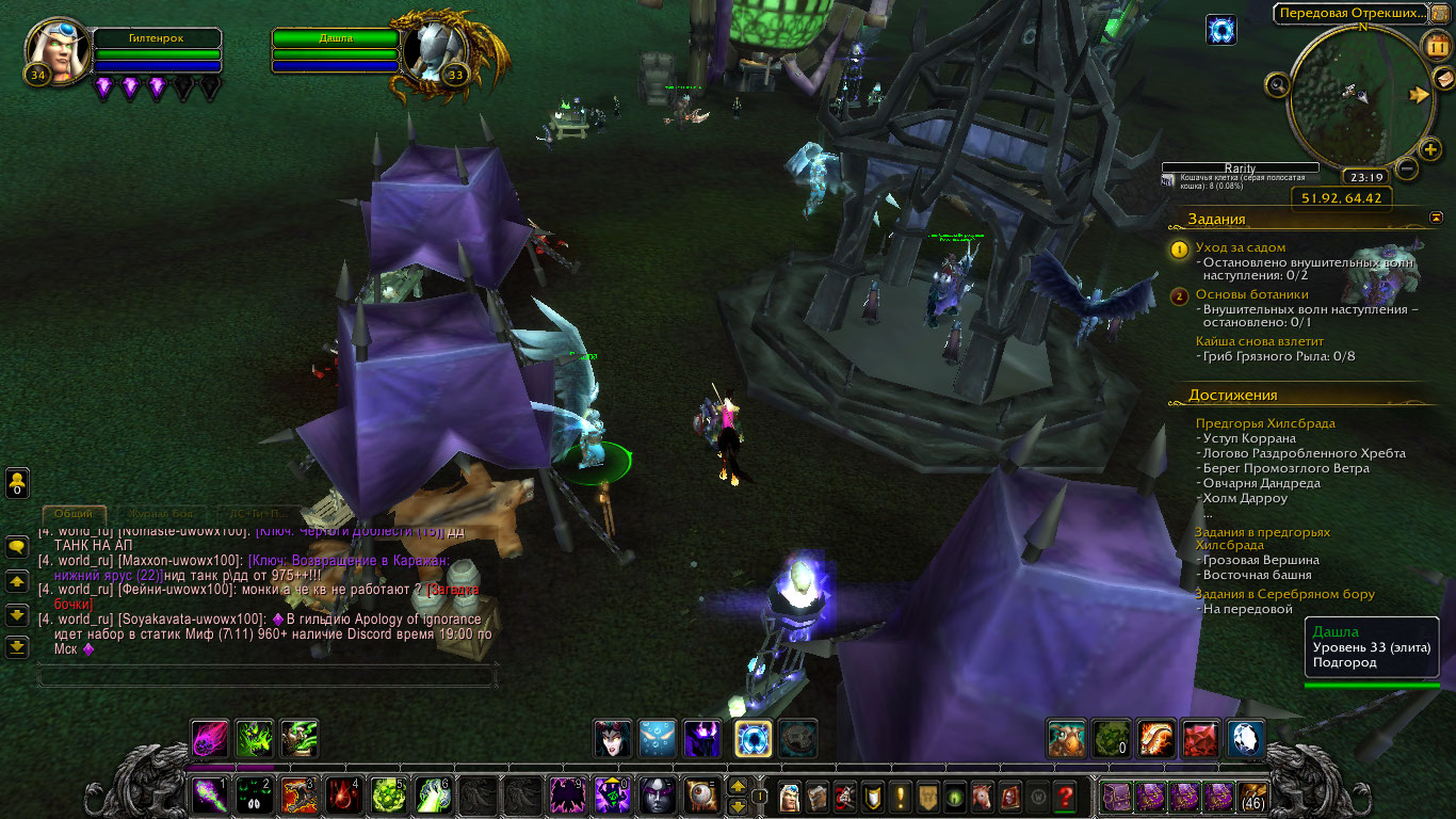 | Additional Information | Скриншоты.... Показывается на карте, что квест еще не сделан или цепочка к нему. Кв https://ru.wowhead.com/quest=27550/гибель-погребальных-костров Возможно он должен идти после сдачи https://ru.wowhead.com/quest=27518/война-миров-глава-iii ? Я и Дашла. У который должны появиться кв нипы, дающие следующие 3 кв по wowhead -любуемся друг на друга минут 10-15. Нпс не приходят. | ||||