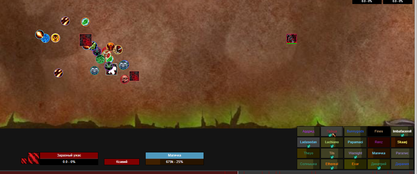 я уже буду отвечать игроку в той теме, так как баг там связан именно с классовой абилкой. Вам надо предоставить пруф: на ману после реса (на том присте не видно, так как в логах его не реснули) на 100% порчи от крадущегося ужаса что танк у вас превращается когда попадает в сон. на вашем логе я вижу только пала который вышел из сна, у него все показатели были на фул, можете сами убедиться 0:19 выходит из сна, 0:20 все показатели 100% (на счет набора порчи уже обсудили) именно смерть была только у приста на логе, остальные полностью не умирали. |