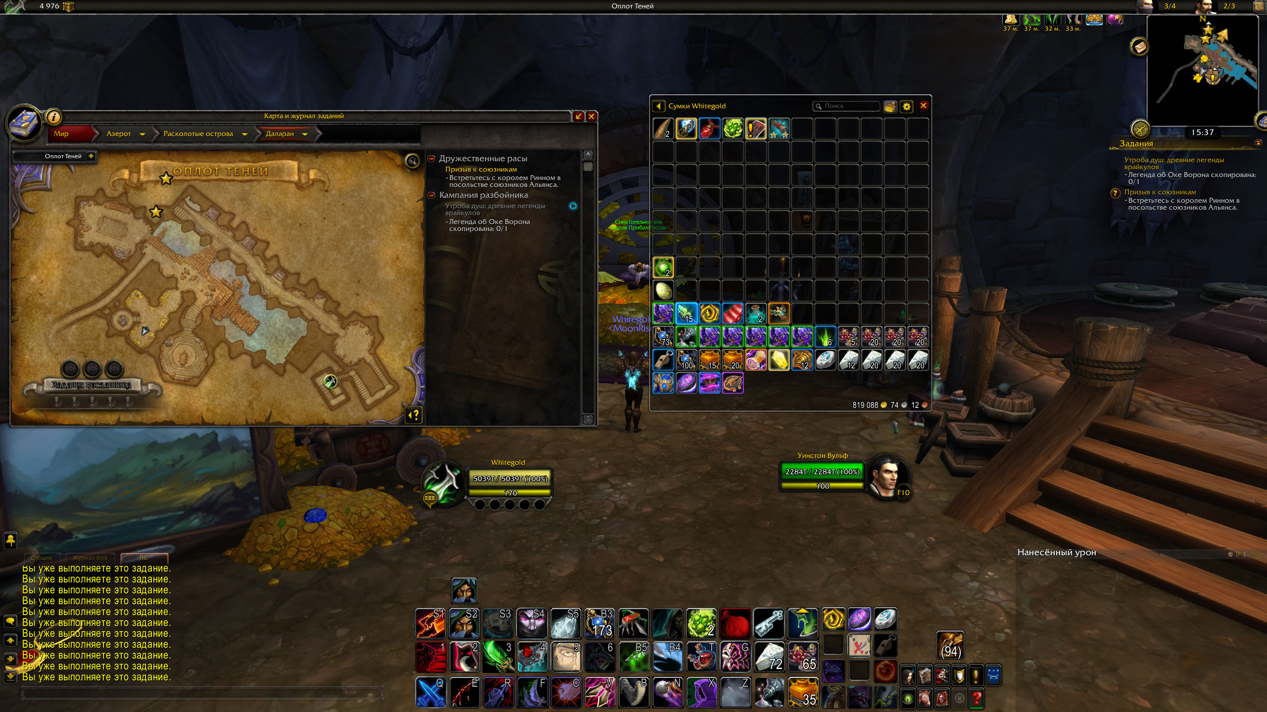 | Description | Первый раз когда выполняешь Ваучер хранилища он работает нормально, а когда получаешь второй Ваучер , нельзя активировать квест из инвентаря, пишет вы уже выполняете это задание, а этого задания нет в списке заданий. https://ru.wowhead.com/quest=44159/%D0%B2%D0%B0%D1%83%D1%87%D0%B5%D1%80-%D0%B4%D0%BB%D1%8F-%D0%B3%D0%BE%D0%B3%D0%B5%D0%BB%D1%8C%D0%BC%D0%BE%D0%B3%D0%B5%D0%BB%D1%8F /script DEFAULT_CHAT_FRAME:AddMessage("\124cffffff00\124Hquest:44159:10\124h[Ваучер для Гогельмогеля]\124h\124r"); | ||||