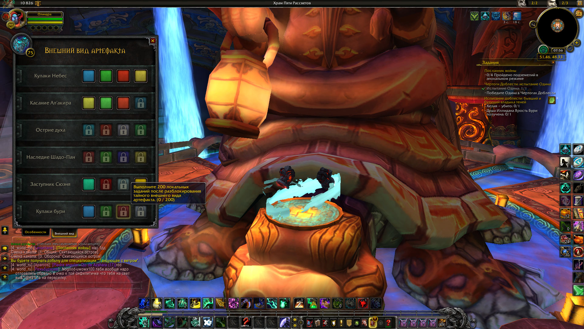 | Description | Добрый день. Не засчитывается прогресс для разблокировки доп. цветов у https://ru.wowhead.com/item=139563/кулак-бури#comments. При том, как за подземелья, так и за локальные задания и убийства игроков. | ||||
