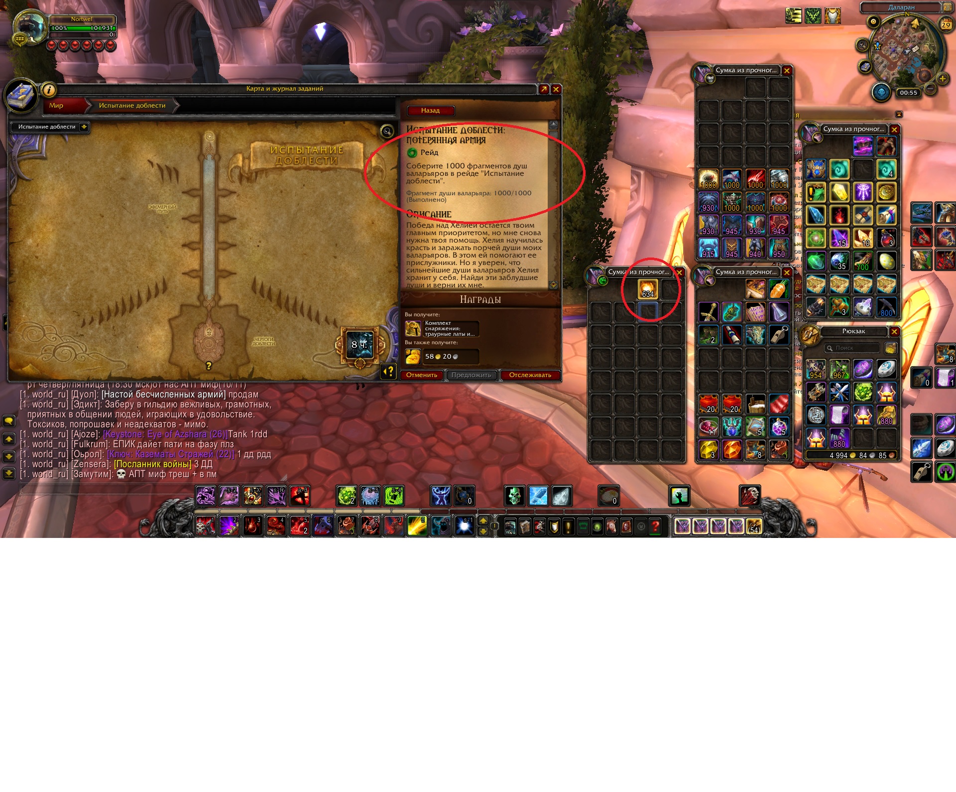 | Description | Начал выполнение квеста "Испытание доблести: потерянная армия" очень давно, т.к. квест достаточно много времени занимает, то особо не торопился. Собрал 634 [Фрагмент души валарьяра]. После отправил их в банк, чтобы освободить место в сумках, и сразу взял обратно, и квест багнулся, т.е. стал считаться выполненным, но при попытке сдать его, пишет "не хватает нужных предметов". При попытке отмены квеста предупреждение о том, что все квестовые предметы пропадут. А я бы очень не хотел фармить заново это итемы. Так что прошу разобраться. | ||||