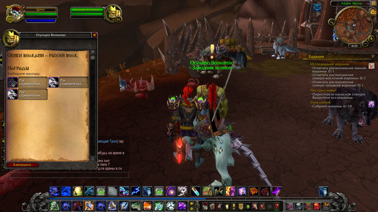 | Description | https://ru.wowhead.com/quest=7660/%D0%BE%D0%B1%D0%BC%D0%B5%D0%BD-%D0%B2%D0%BE%D0%BB%D0%BA%D0%B0%D0%BC%D0%B8-%D0%BF%D0%BE%D0%BB%D1%8F%D1%80%D0%BD%D1%8B%D0%B9-%D0%B2%D0%BE%D0%BB%D0%BA https://ru.wowhead.com/quest=7661/%D0%BE%D0%B1%D0%BC%D0%B5%D0%BD-%D0%B2%D0%BE%D0%BB%D0%BA%D0%B0%D0%BC%D0%B8-%D1%80%D1%8B%D0%B6%D0%B8%D0%B9-%D0%B2%D0%BE%D0%BB%D0%BA эти квесты недоступны в игре, но у нас они есть. https://ru.wowhead.com/npc=3362/%D0%BE%D0%B3%D1%83%D0%BD%D0%B0%D1%80%D0%BE-%D0%B2%D0%BE%D0%BB%D0%BA%D0%BE%D0%BF%D0%B0%D1%81 вроде как должен торговать волками, но у нас он не продает их, а только дает бесплатно тех волков. | ||||