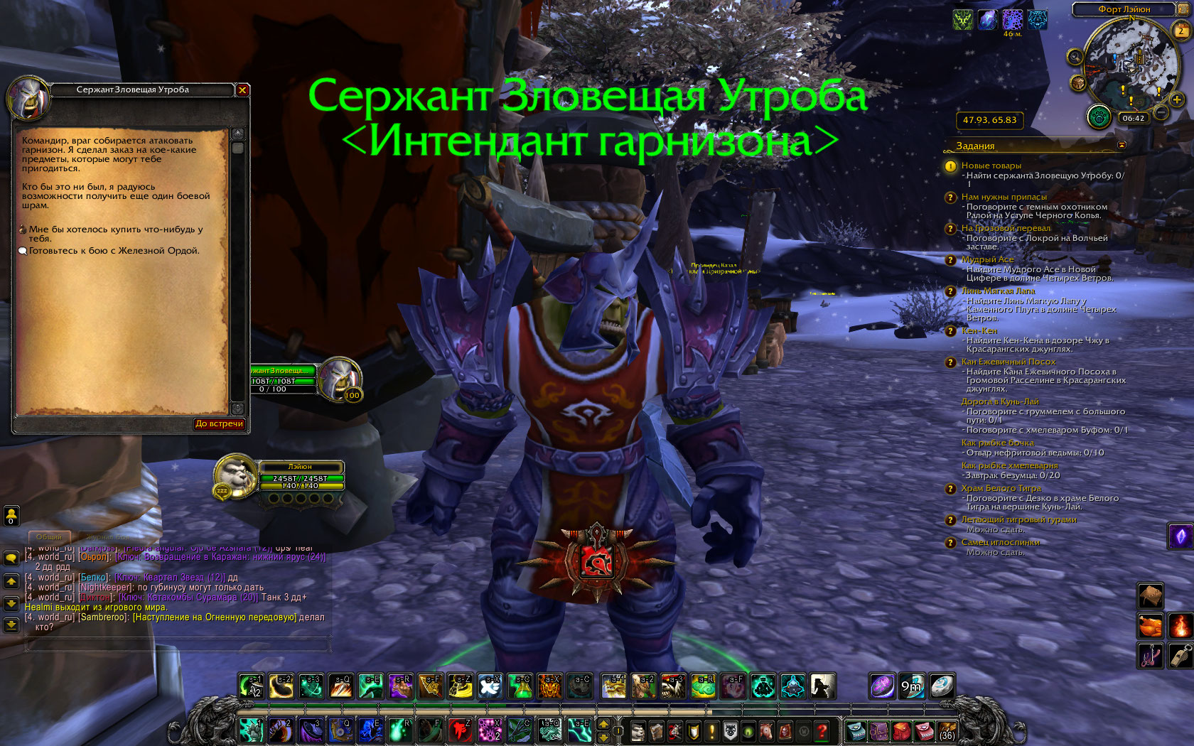 | Description | https://ru.wowhead.com/quest=38427/новые-товары невозможно выполнить, поскольку диалог с https://ru.wowhead.com/npc=79774/сержант-зловещая-утроба не засчитывается. | ||||