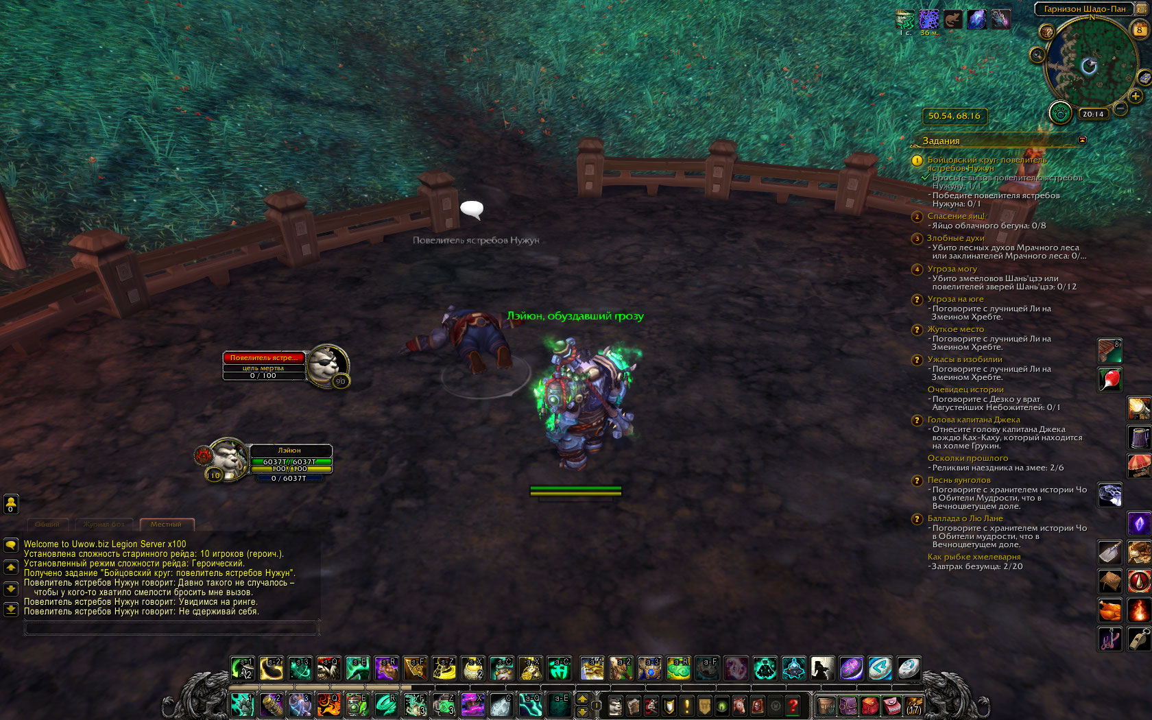 | Description | Цепочка квестов Бойцовский круг нужна для того, чтобы иметь возможность взять в напарники одного из героев https://ru.wowhead.com/faction=1270/шадо-пан для достижения https://ru.wowhead.com/achievement=7297/проверенные-друзья , однако это невозможно, ибо большую часть квестов завершить нельзя, ниже я перечислю их, а также два квеста, которые удалось выполнить. https://ru.wowhead.com/quest=31220/бойцовский-круг-повелитель-ястребов-нужун - убил, не засчитало. (Плюс, сломан текст во время диалога) https://ru.wowhead.com/quest=31128/бойцовский-круг-лао-чинь-стальное-брюхо - убил, не засчитало. https://ru.wowhead.com/quest=31221/бойцовский-круг-тэнь-у-красный-дым - убил, не засчитало. https://ru.wowhead.com/quest=31127/бойцовский-круг-чао-голосистая - убил, не засчитало. Следующие квесты из цепочки рабочие: https://ru.wowhead.com/quest=31038/бойцовский-круг-снежный-цветок - убил и засчитало. https://ru.wowhead.com/quest=31104/бойцовский-круг-ялия-мудрый-шепот - убил и засчитало. | ||||