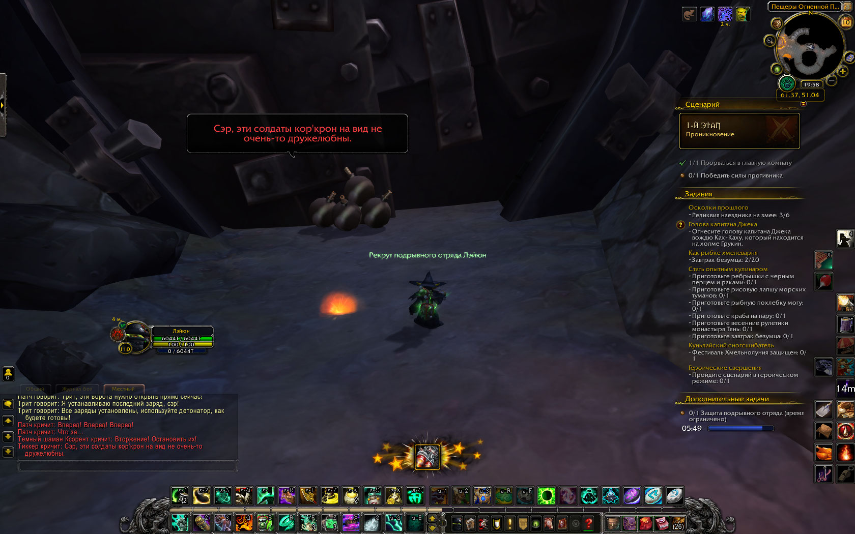 | Description | Нельзя пройти дальше, поскольку стена не взрывается, хотя НПС спокойно проходят сквозь неё. Сценарий: https://ru.wowhead.com/zone=6731/секреты-огненной-пропасти | ||||