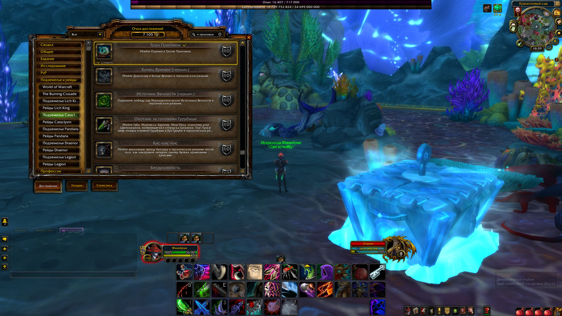 Пещеры удалось пройти и получить достижение, а с Троном Приливов по-прежнему беда. За прохождение не даётся вообще никакое достижение. Так же скриншот с прохождением разбойником. Всё подземелье зачищено, Озумат побеждён, достижение отсутствует. WoWScrnShot_040619_163930.jpg (504,655 bytes) |