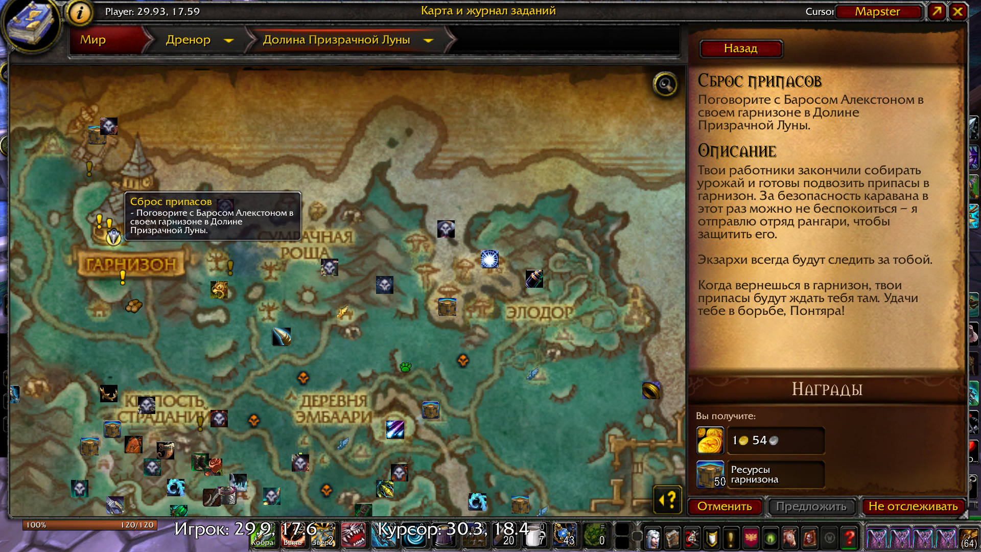 | Summary | 0020222: Дренор - Гарнизон - Квест "Сброс припасов" | ||||