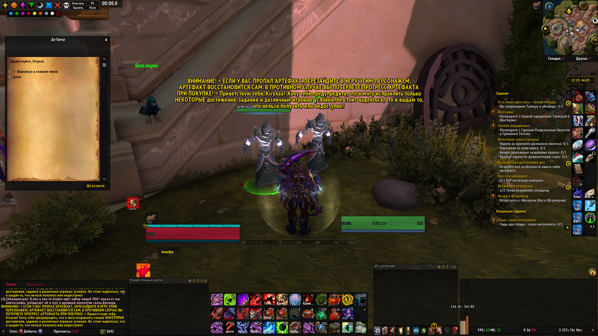| Description | Здраствуйте Администрация сервера UWOW. Недавно а точнее сегодня я с своей ги пошел получать достижения "Слава рейдеру Аргуса". Все было хорошо ну когда мы дошли до "Ловец Душ Имонар" мы сделали достижения "Страшный Противник" но оно нам не засчиталось. Сделали все то что сказано в достижении и проверили в интернете. А точнее взорвали все мины,руны,ростяжки. То-есть мы почистили весь мост от всего что на нем было. И у NPC который стоит возле Аметистовой Цитадели мы не смогли взять данное достижение. | ||||