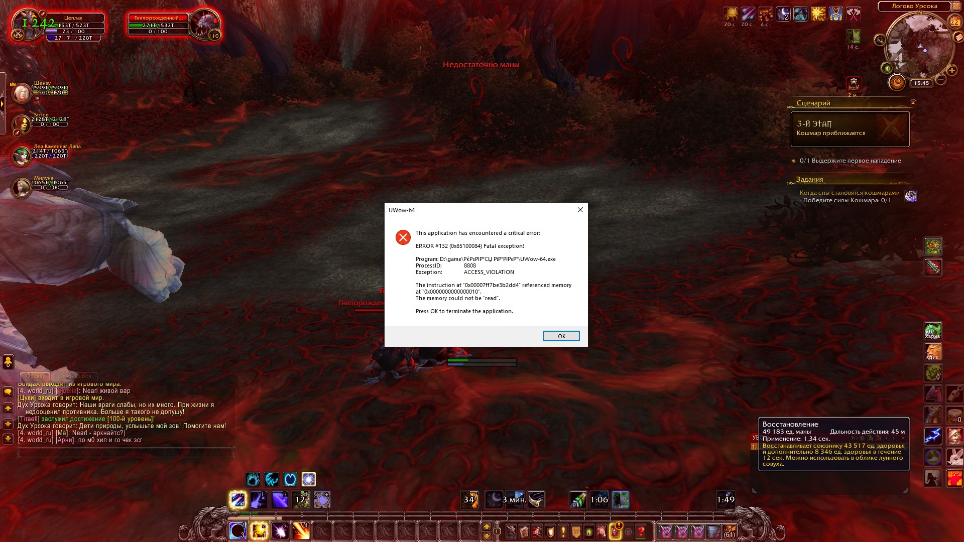 | Description | Квест на артефакт мишки (дриуда) последний квест с задачами , нальная цепочка заданий когда сны становятся кошмарами , после 3 этапа квеста , выдает критическую ошибку , при чем не у меня у одного , со мной бала пати людей , у них тоже выскакивала эта ошибка , в дальнейшем после захода в игру тоже выдавала эту ошибку , помогло только вытащить персонажа через сайт | ||||