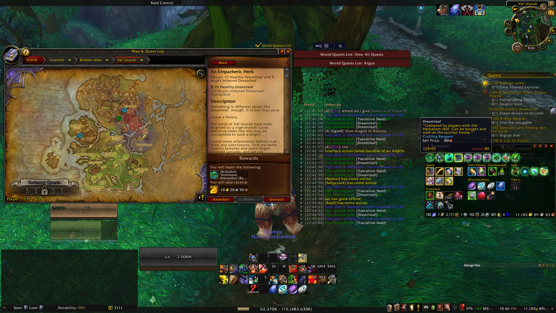 | Description | Quest "An Empathetic Herb" (ID: 40019) for Rank 1 of Dreamleaf requires dropping 15 "Healthy Dreamleaf" (129150) but they do not drop from the herb nodes. Showing chat for proof of picking nodes, as well as number of flowers in bag despite getting 0 Healthy Dreamleaf during this. | ||||