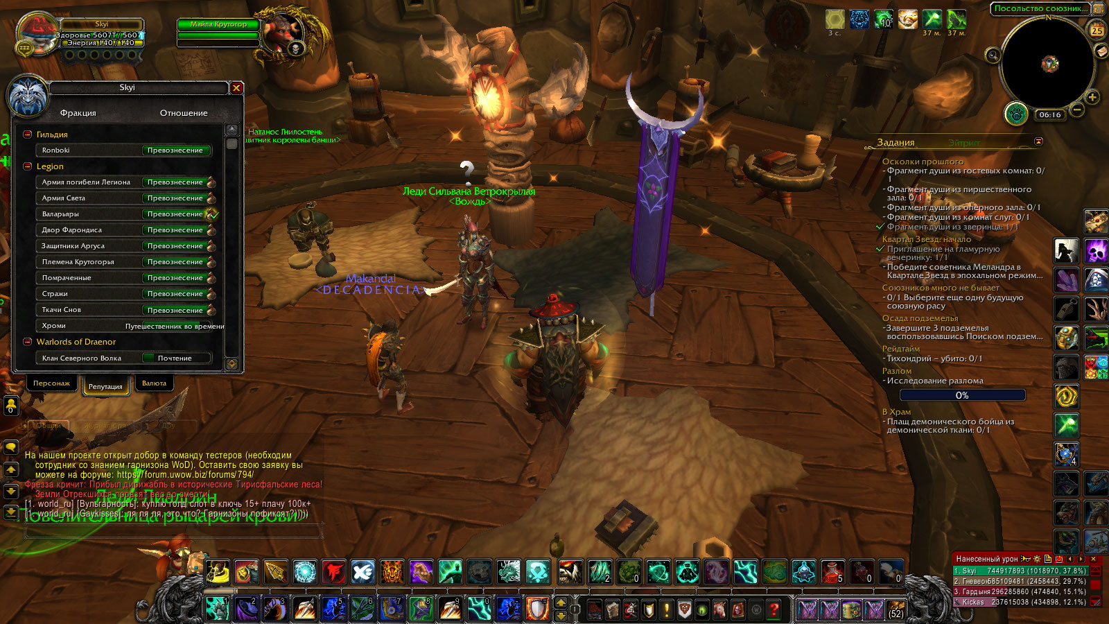 | Description | 1. Ник: Skyi . Сервер uwow.biz . реалтайм: Legion x100 2. Задание: https://ru.wowhead.com/quest=50254/%D1%81%D0%BE%D1%8E%D0%B7%D0%BD%D0%B8%D0%BA%D0%BE%D0%B2-%D0%BC%D0%BD%D0%BE%D0%B3%D0%BE-%D0%BD%D0%B5-%D0%B1%D1%8B%D0%B2%D0%B0%D0%B5%D1%82 3. Не могу выбрать вторую союзную расу. Не юзаются тотемы. пишется на каждом тотеме 0/1 типо нажать посмотреть как при выборе первой союзной расы, но тут тотемы не открываются, ни один. по этому условие выполнение квеста остается не выполненным и сам квест не принимается. Так же описание рассы не дают и ее представители стоящие рядом. Условно можно выбрать только не выбирается и квест не засчитывается..... Попробовал максимально отобразить это в скринах. Репутация раскачана на все. 2 и 2 скрины - что тотемы не юзаные, и как бы я на них не жал, информация о нем не открывается. 3. скрин . показал что репутация раскачана. остальные скрины показывают что с неюзаными тотемами , задание можно попробовать сдать . все выбирается жмется но не засчитывается.... | ||||