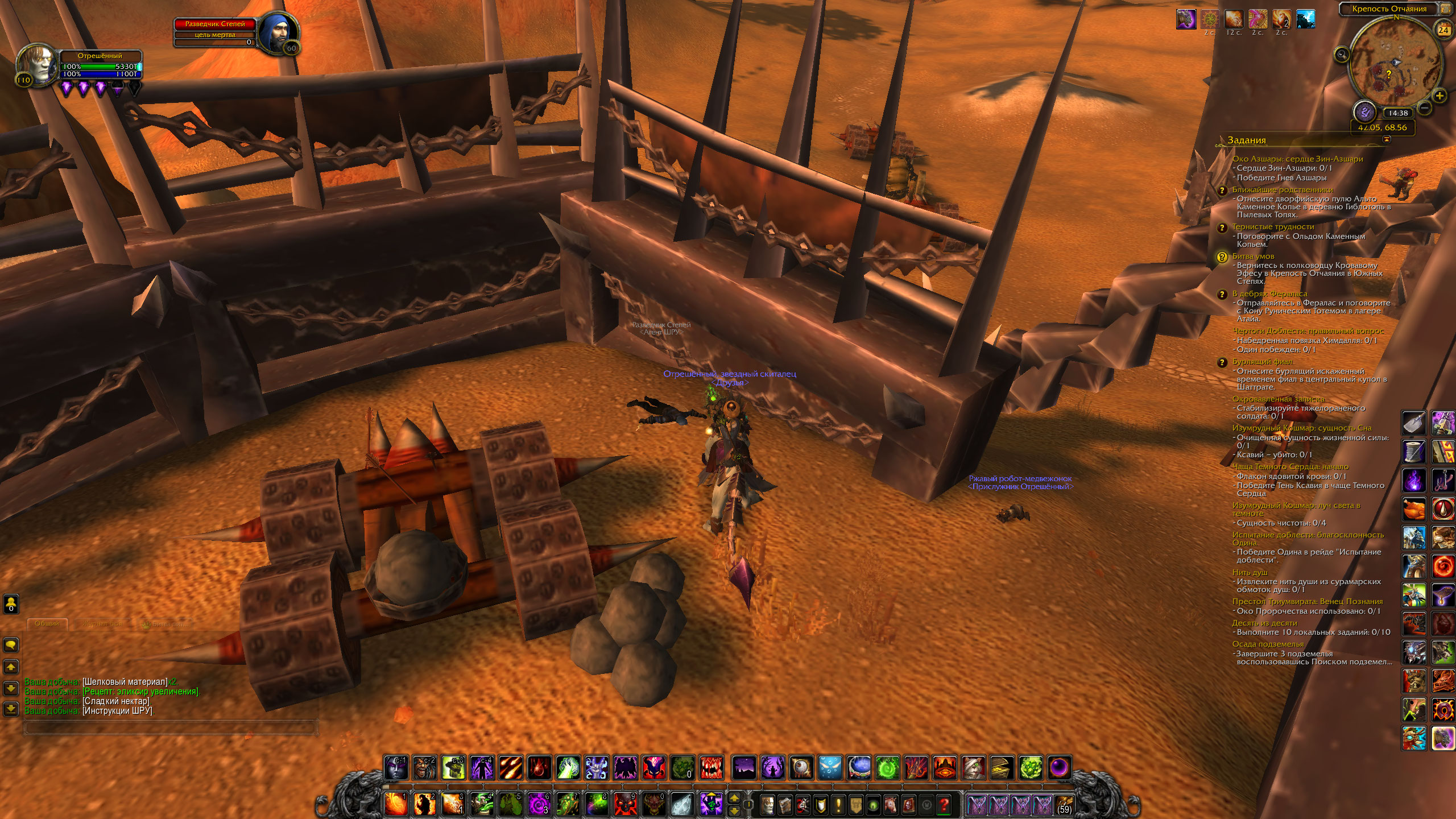 | Description | Не работает квест битва умов в Калимдоре ( Южные степи ). Важно, так как без него невозможно завершить сценарий "Крепость Отчаяния", являющийся одним из сценариев данной локации. Квест невозможно выполнить так как нет возможности открыть диалоговое окно у НПС ( при наведении на него курсор не изменяется на облако ). | ||||